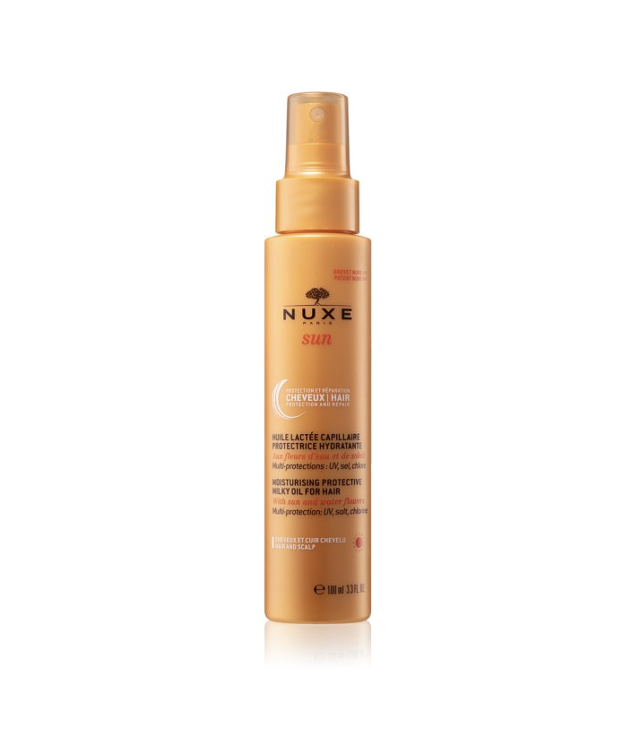 Онзи ден се сдобих със слънцезащитен спрей за коса на Nuxe (фен съм на козметиката им от много време, особено Sun серията). Реших да го взема главно заради любимия аромат на серията и защото е бюджетен. Има млечна текстура. На суха коса ми приглади добре косъма, като лееко в началото се усещаше маслено покритие (води се масло с мляко?) мисля че точно това маслено усещане ще пази добре косата на плажа; също е и водоустойчив. Аромата се задържа средно силно в косата и до следващия ден. Пробвах го и на мокра коса и също ми хареса. За мен аромата е важен и се радвам, че заложих на това а не само на Солей защото там аромата не ми допадна толкова.