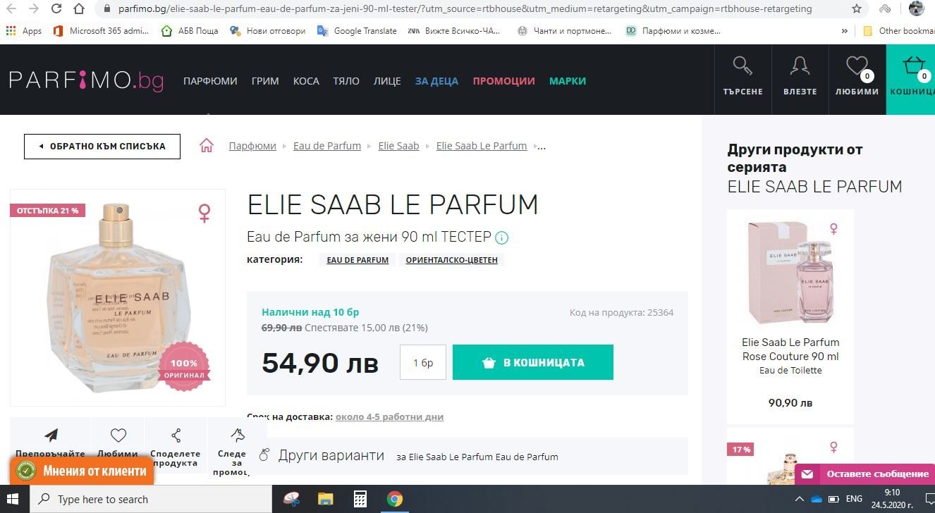 В Парфимо Ели Сааб ELIE SAAB LE PARFUM тестера 90мл в момента е 54,90 лв