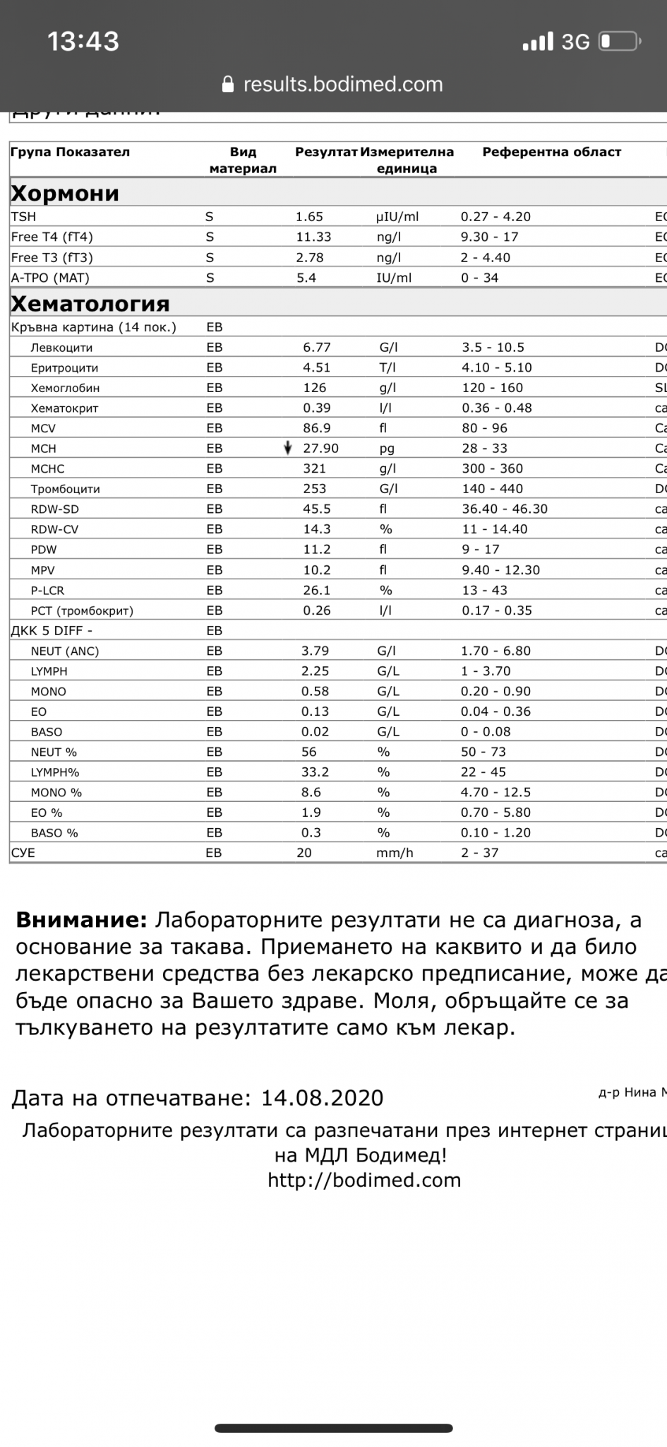 Мда, на мен ми казват евентуално да почна Т3, обаче с това ниско тсх и предхождаща хиперфункция, никой доктор няма да го изпише. И те така....