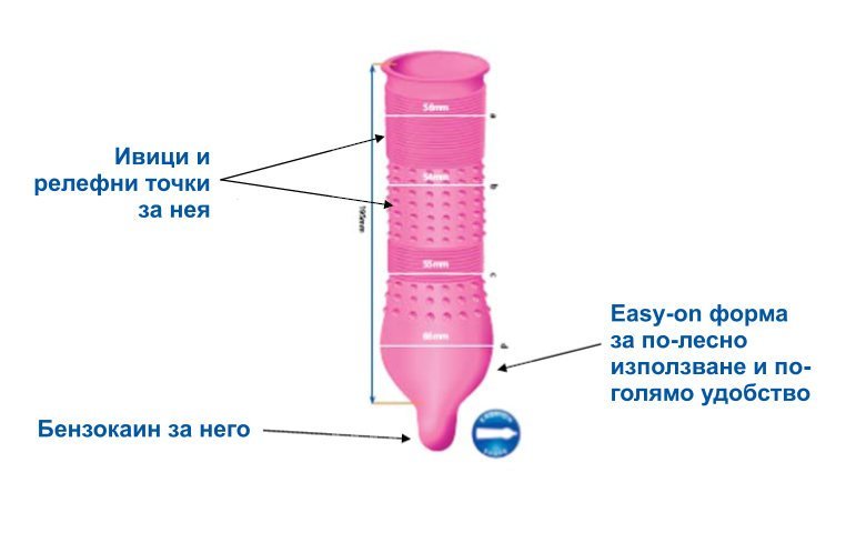 Все пак ако мъжете се интересуват от удоволствието на жената и го правят с кондом, мога да им препоръчам да опитат и релефни презервативи, вече има доста модели такива на пазара. Това може доста да повиши усещанията при жените.