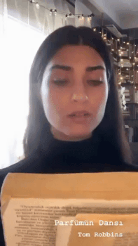 Вчера освен сутрешното кафе ни е показала и кратък клип, на който чете откъс от книга, която изглежда чете в момента.