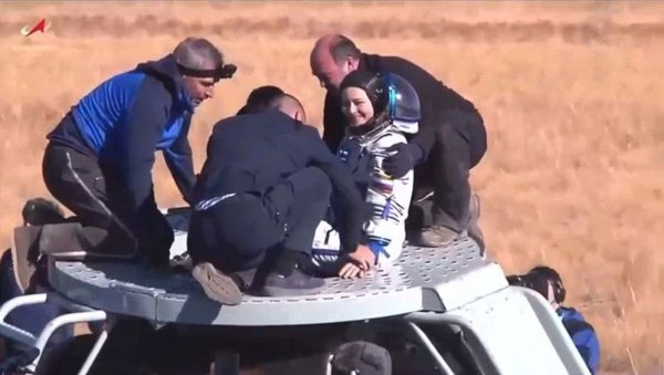 След две седмици снимки в Космоса днес в 7,35 часа първият филмов екипаж се приземи в степите на Казахстан. Цялата операция беше предавана на живо от Роскосмос и НАСА, съобщиха информационните агенции.