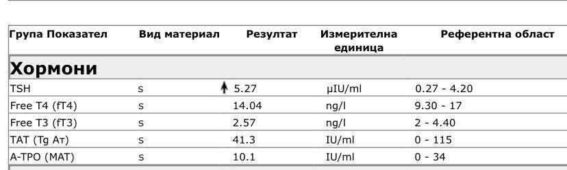 А тези са от вчера : TSH - 0,716 (0,3-3.36)