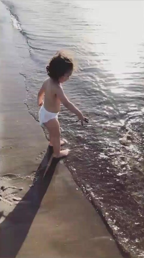 Засега само Фрида плува, а Гюнче помага на пясъка да се върне в морето Laughing