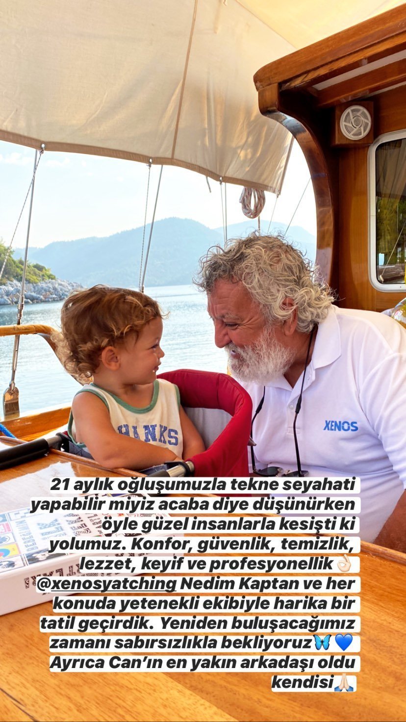 Мой дорогой капитан Недим, у которого на борту было три семьи с младенцами и детьми. В течение 10 дней в эту ветреную погоду он предоставил нам огромный комфорт и покой. Большое спасибо за все. Пусть ваш ветер будет попутным...