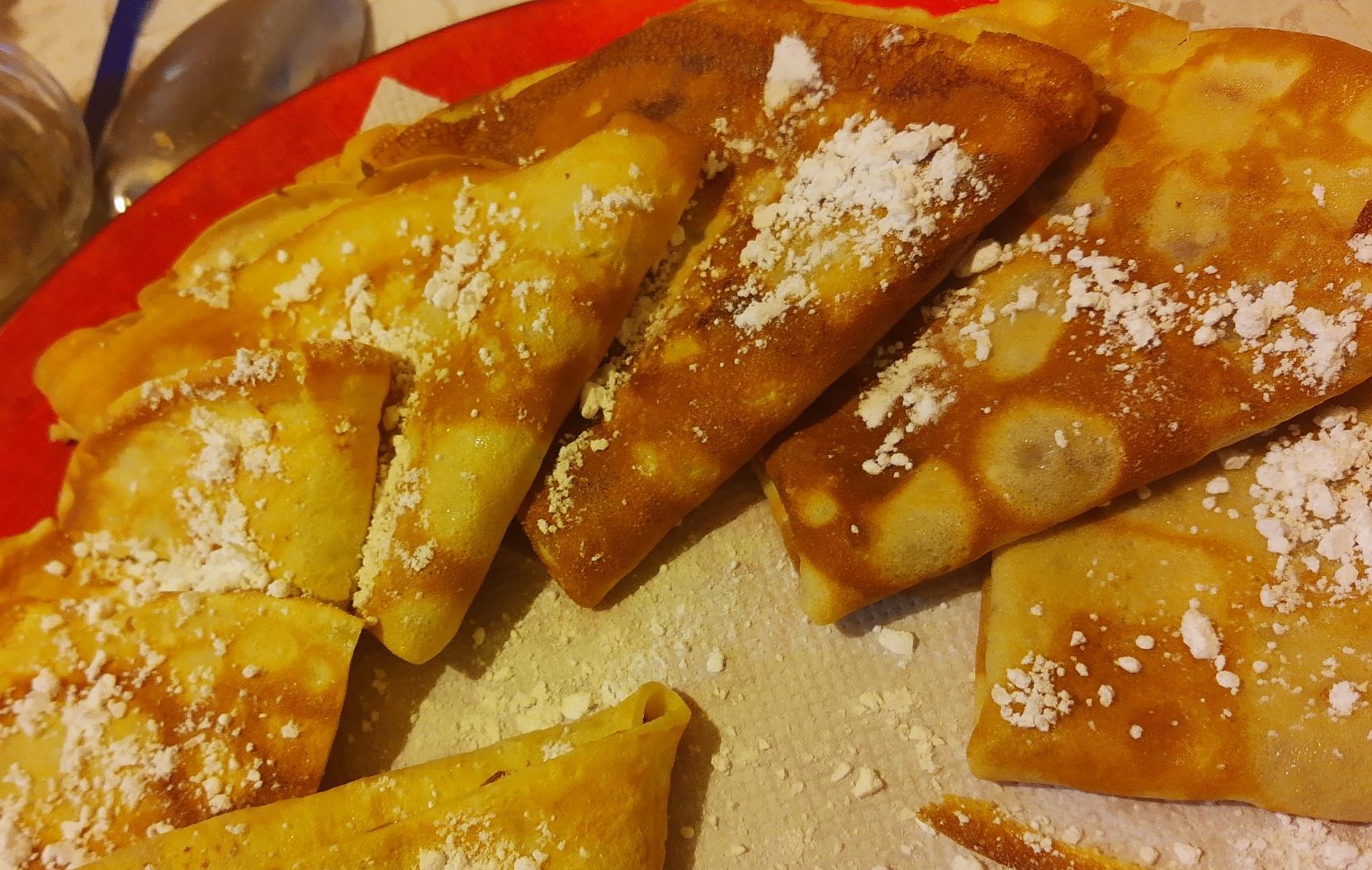 От днес палачинки. Станахме в 12 ч и това ни беше закуско-обяда.