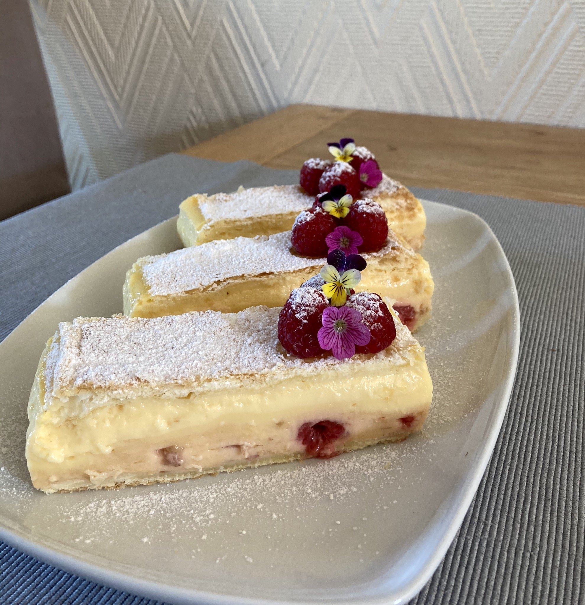 Десерт с къстард и малини