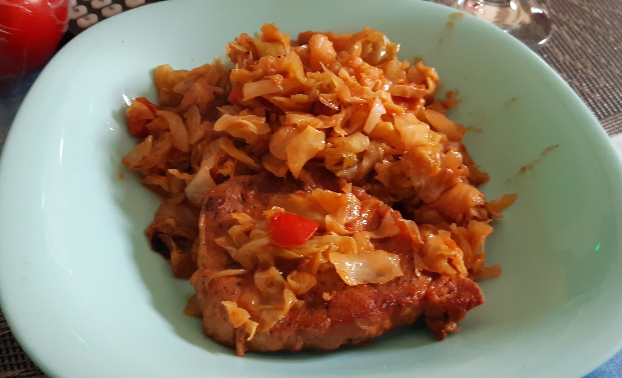 Прясно зеле със свинско каре (едни сухи пържолети реновирах- стана... ммм...)