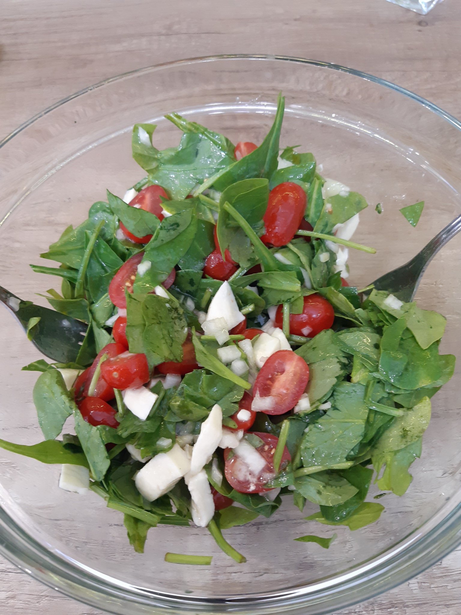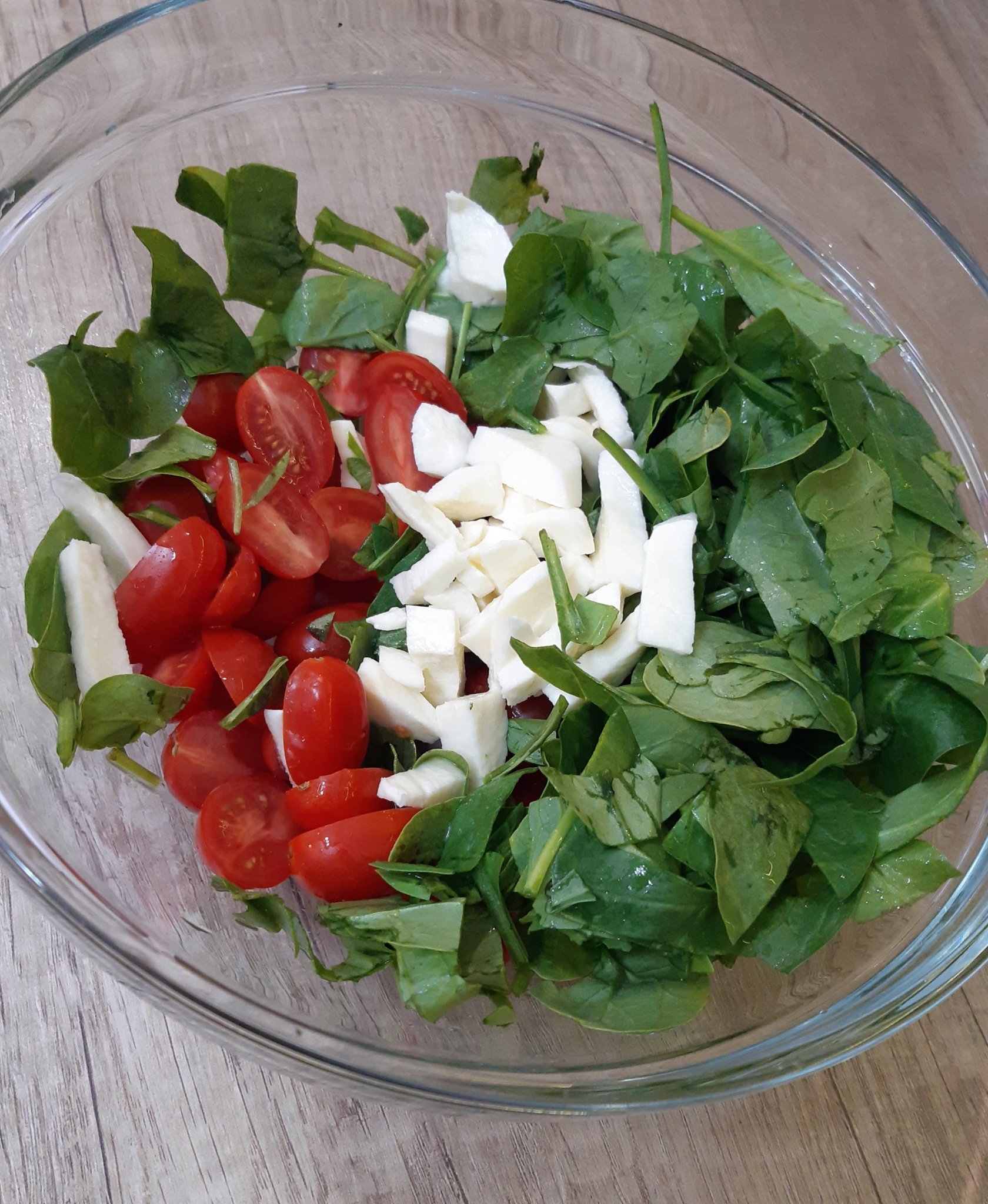 Салатка от чери домати, спанак и моцарела: