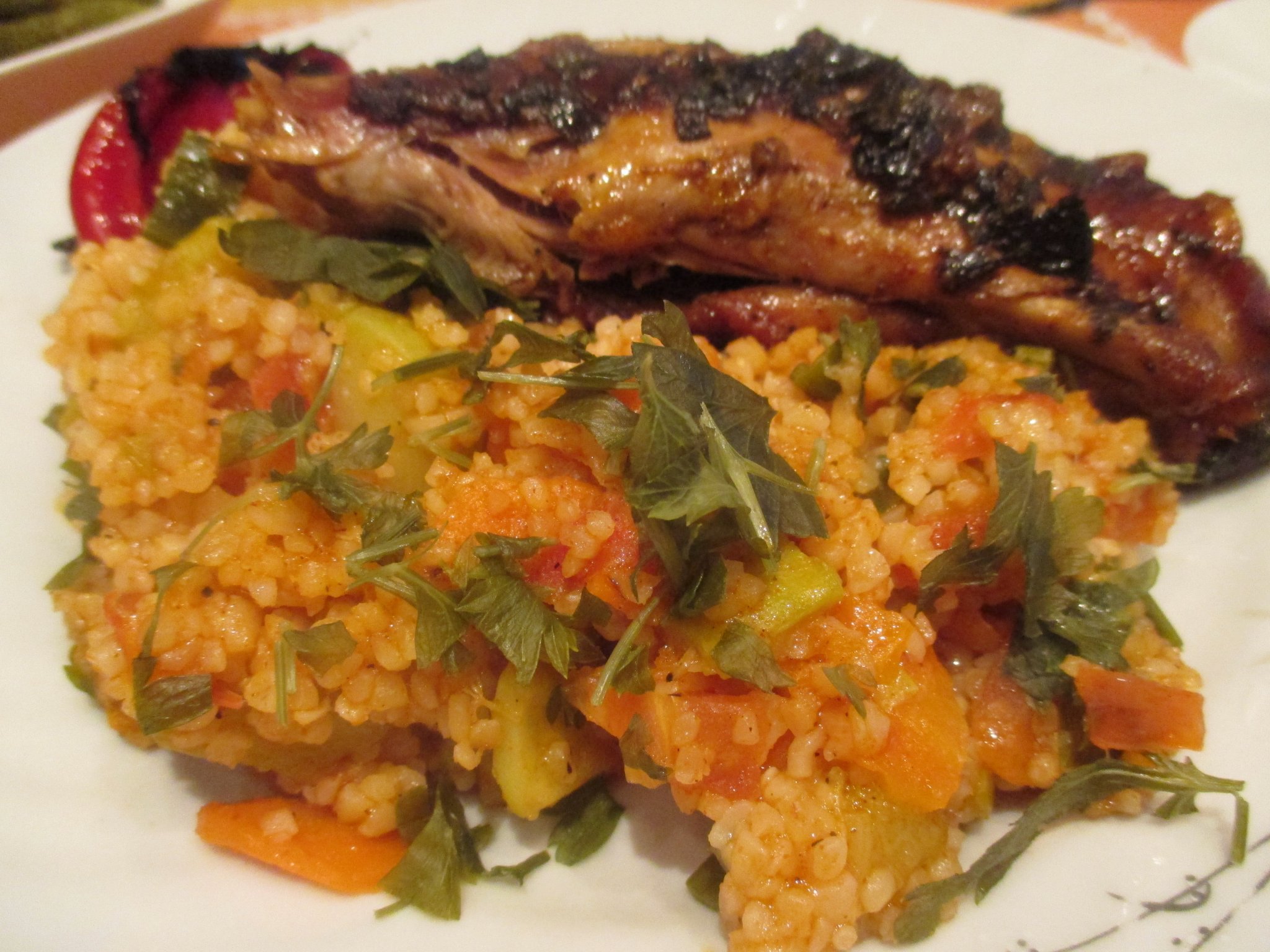 Булгур със зеленчуци, отдавна се канех да опитам, но след апетитната снимка на булгур с коприва и поширано яйце на пеп-4o, знаех, че трябва да го сготвя.
