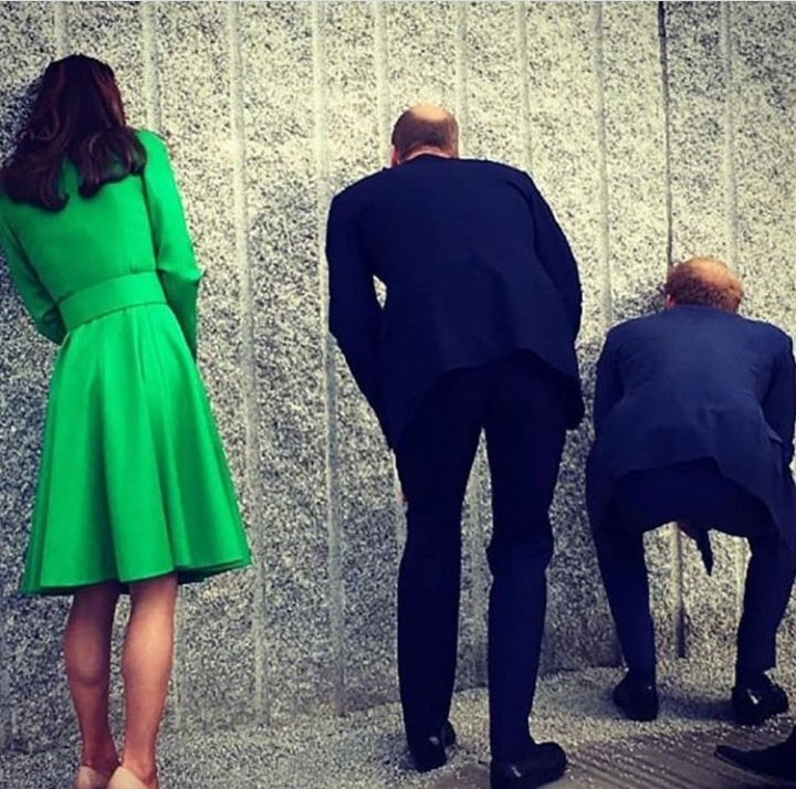 Какво правят Кейт, Уилям и Хари на снимката? Много са смешни. Зеленият цвят на Кейт много ми харесва.