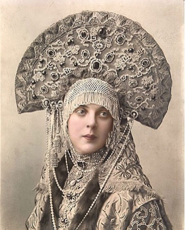 Принцеса Олга Константинова Орлова, облечена в руски костюм за Бала от 1903 г.