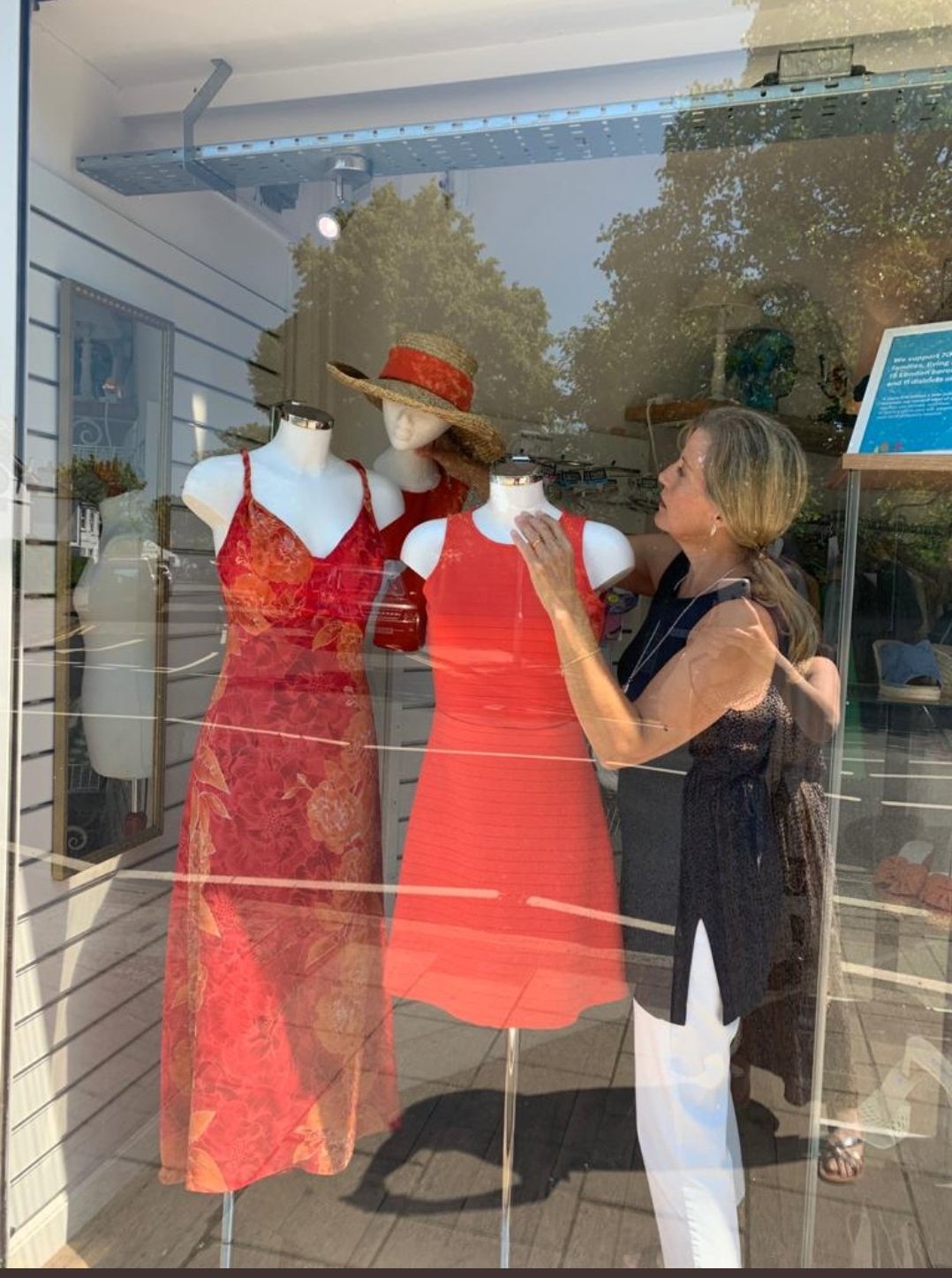 прекара време в помощ на доброволци в благотворителния магазин Weybridge, който отвори врати по-рано тази седмица.