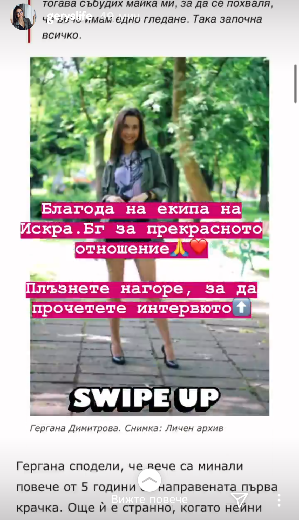 Вчера гледах сторита на Лина, в които отговаряше на въпроси. На едно от тях имаше толкова много правописни грешки, че чак ми стана неудобно. Мислех да й пиша добронамерено, но не бях сигурна как би го приела. Още я държат емоциите от раждането, стори ми се тъпо да се правя на учителка. Колкото до съдържанието, не виждам по-нормално от това да е предимно свързано с детето, поне в началото. Ако се очаква от инфлуенсърите да са автентични, е логично да споделят това, което ги вълнува и се случва в момента в живота им. Ако нечие съдържание ми стане скучно или не ми е полезно, просто ще го отследвам.