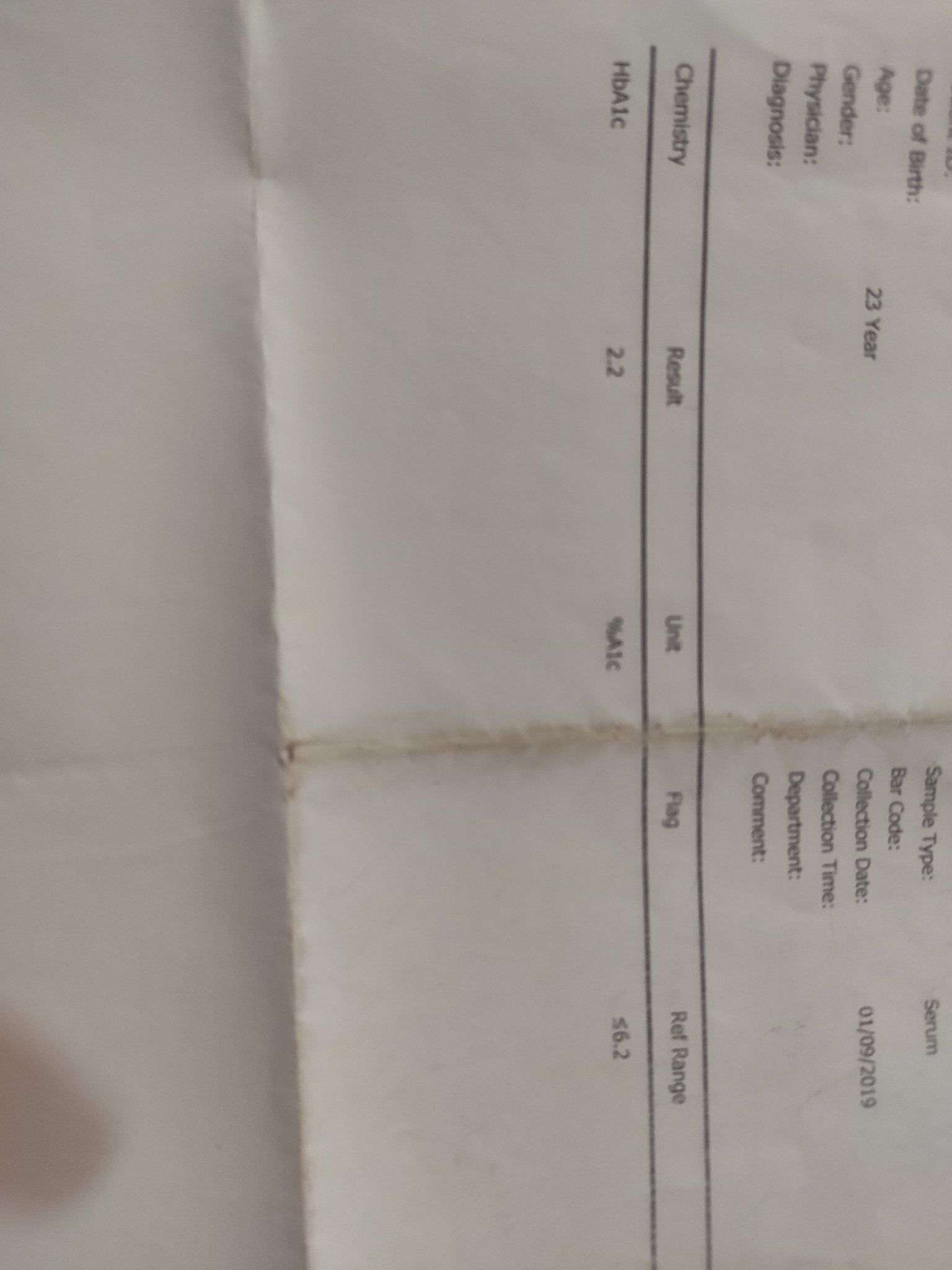 Желязо също в норма. А изследването 2.2 на гликиран хемоглобин е пускано в лаборатория на Света Анна .  Прикачвам снимка ,изследването е от 2019 ,съжалявам заради неподходящия вид на листа