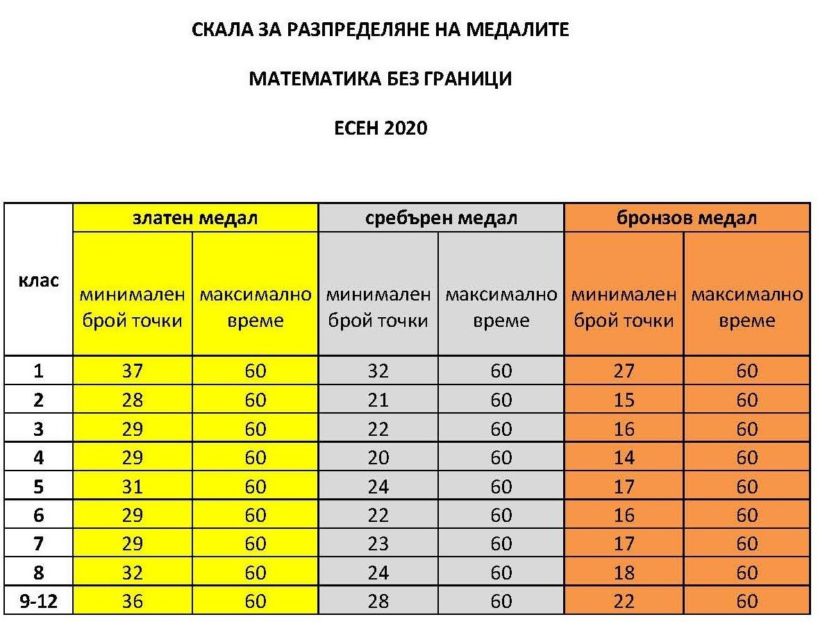 Ниска ми се вижда скалата на медалите. Задачите явно са затруднили децата.
