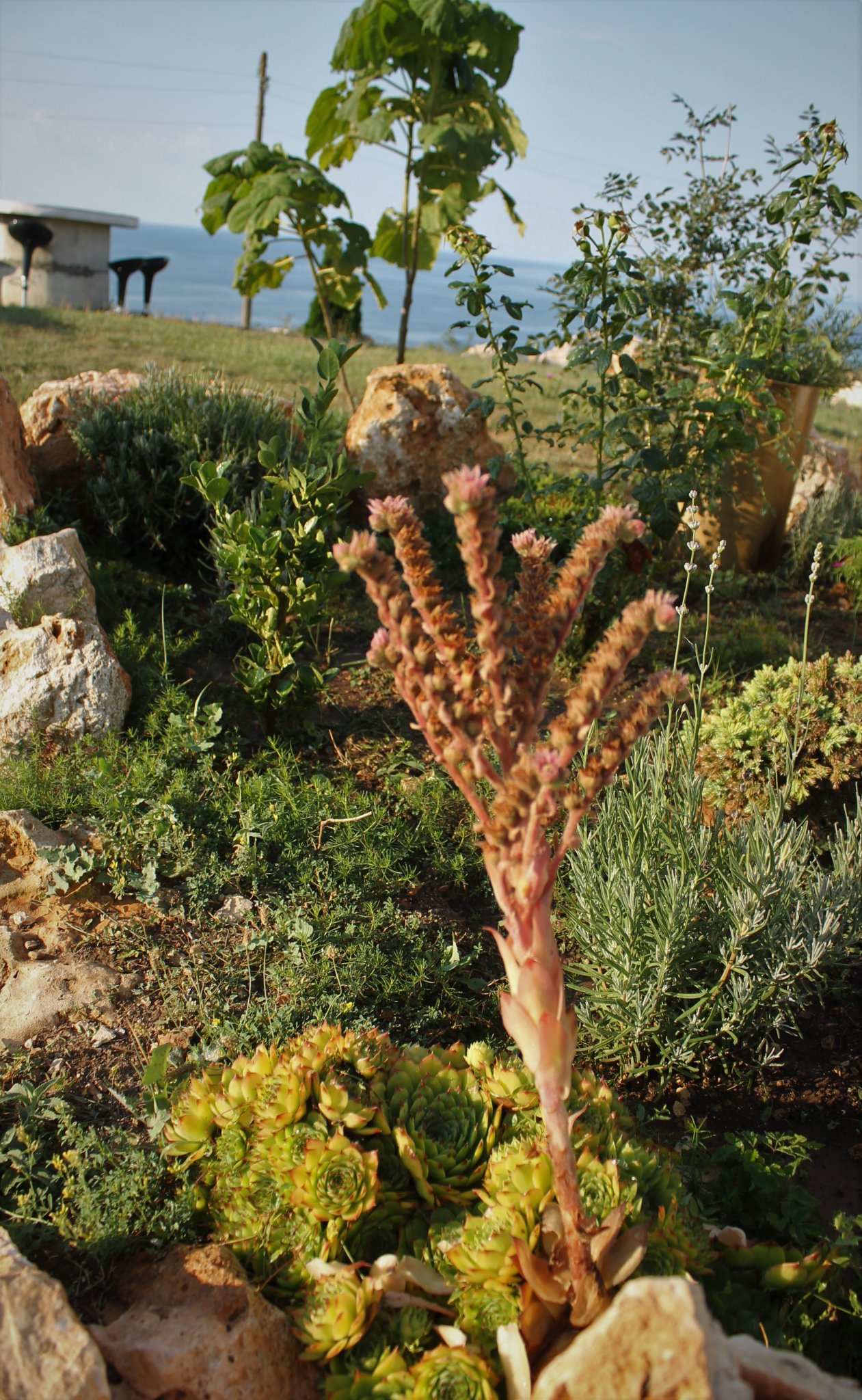 Предполагам, че точно за опунция става въпрос. Директно в земята се слага. Ето плантацията покрай импровизираната ограда от камъни и дебелеца, за който писах по-рано. Лигуструмът така сме захващали от клонки във вода, но на есен, когато вече не е горещо.
