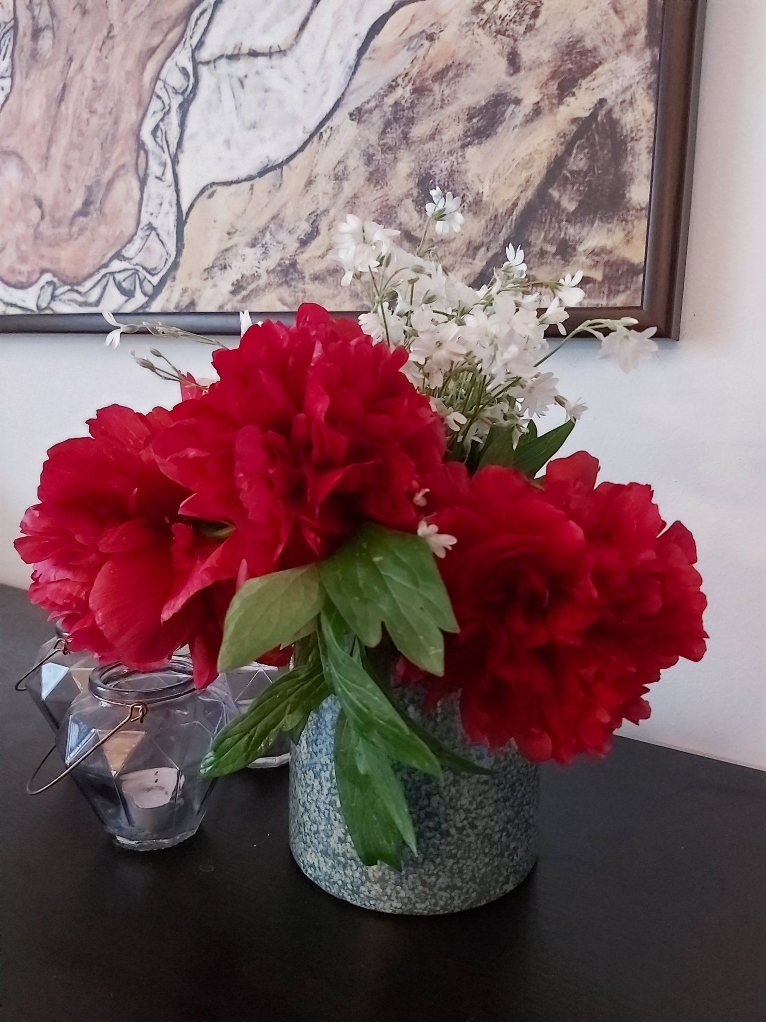 Ох,само вали ли, вали...И градушка даже. Обрах си някои цветя,че заприличаха на парцали.