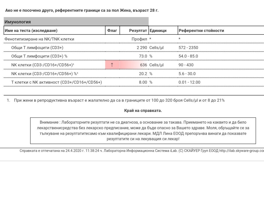 И аз съм с завишени НК клетки ,Конова ми предписа влинка интралипид преди ЗЕТ и каза,че помагало за имплантацията.