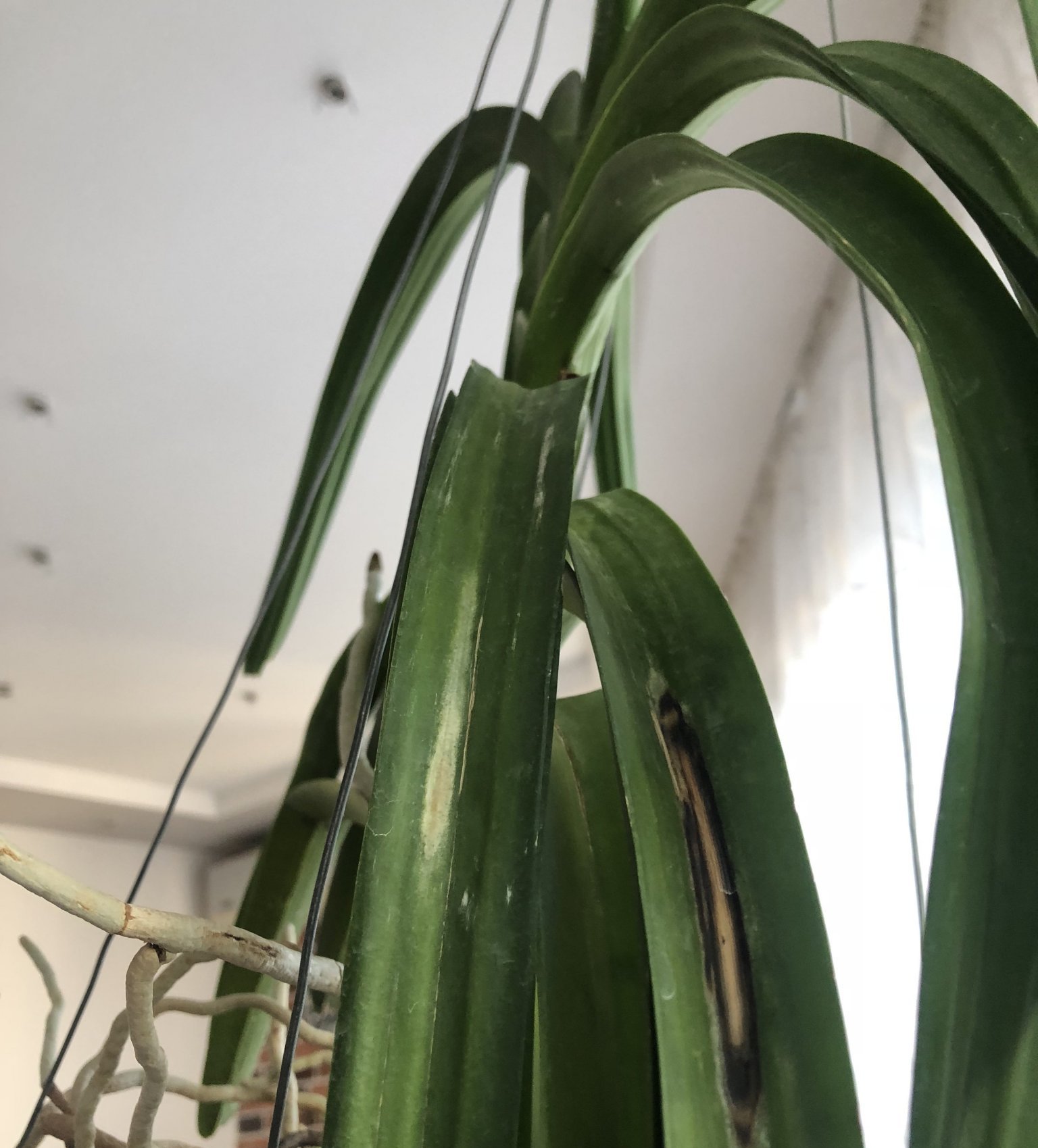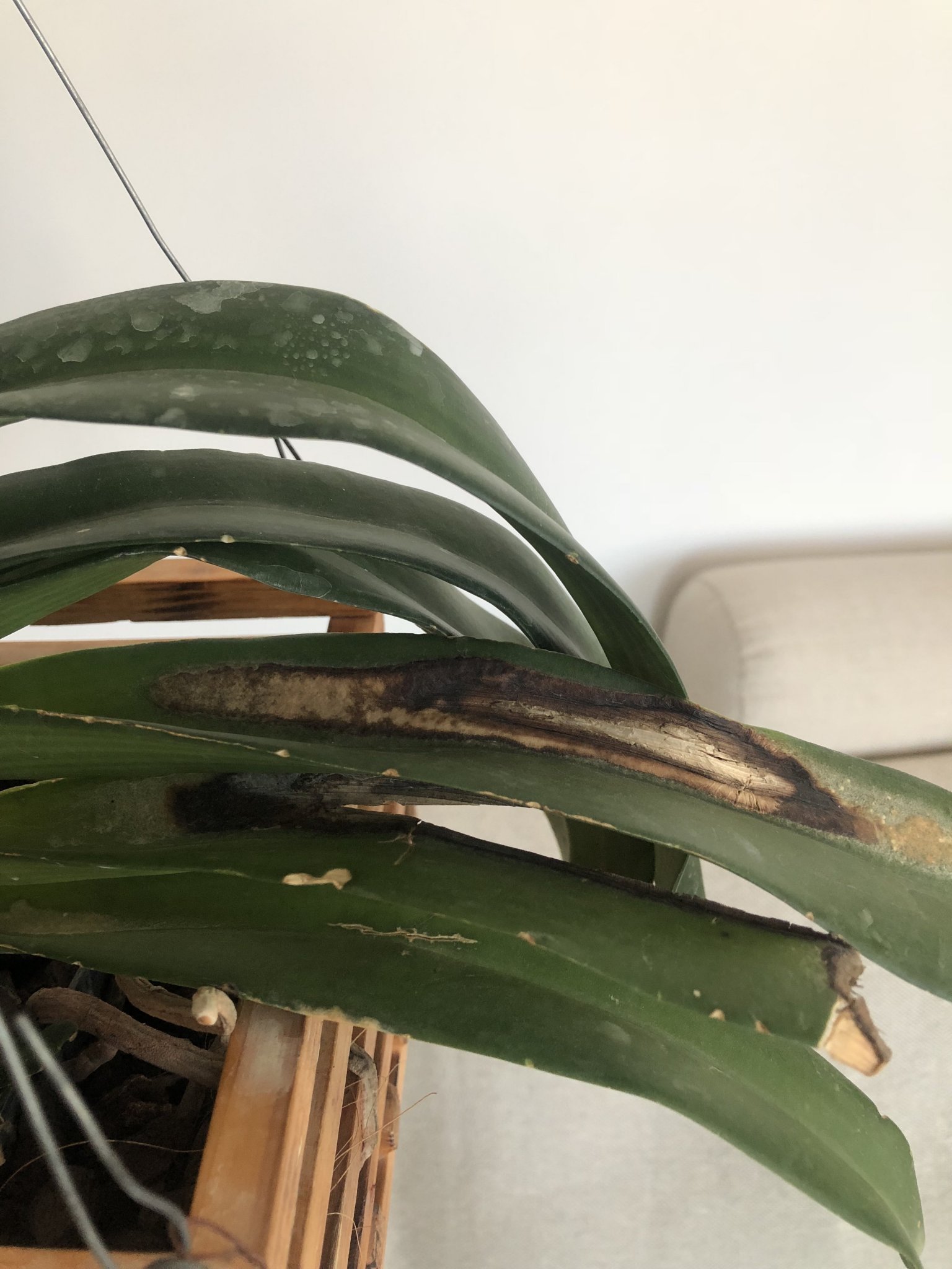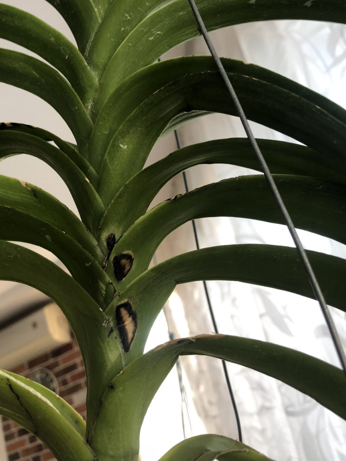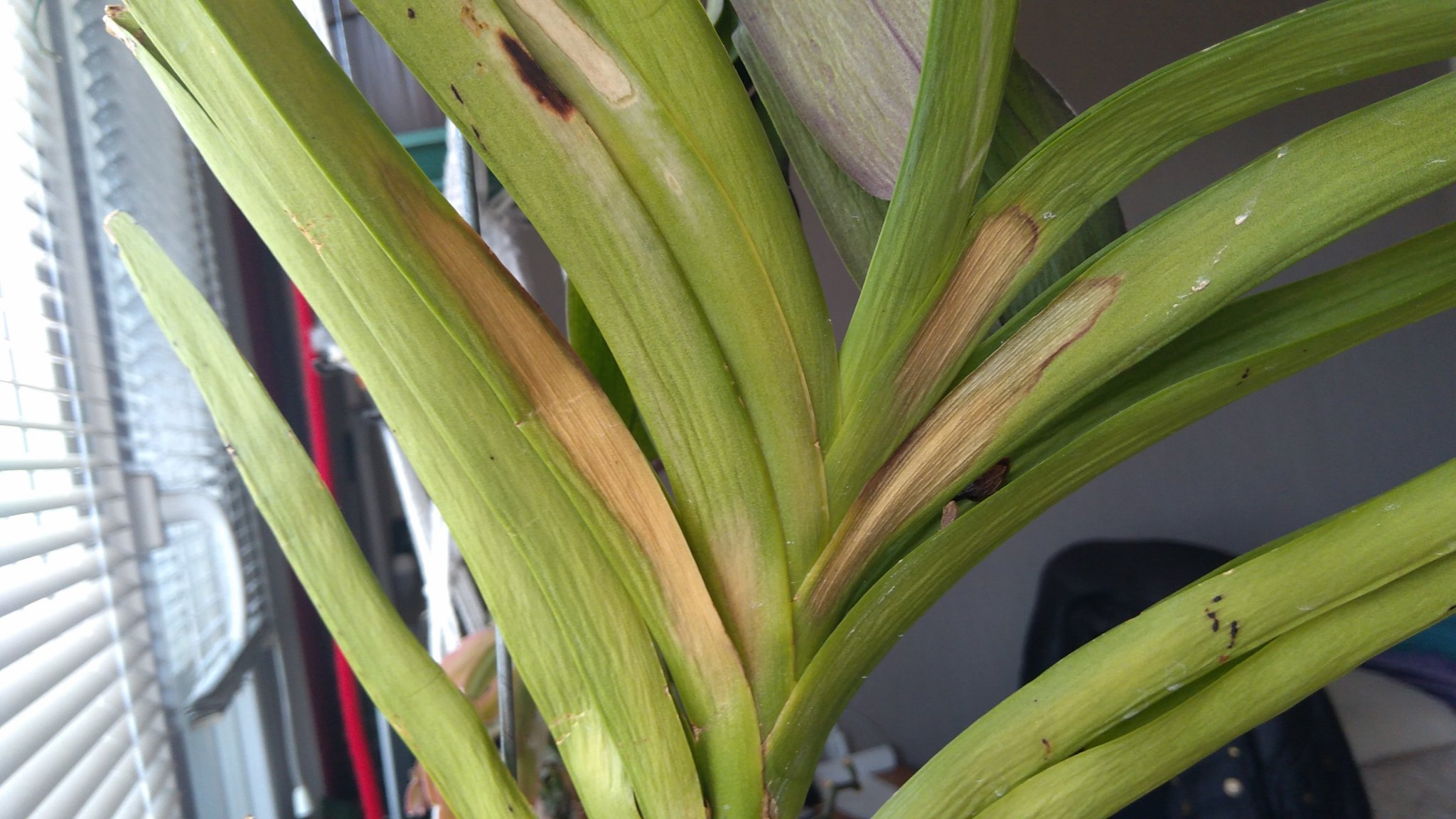 Нещо странно се случва с листата на едната орхидея. Какво може да е?