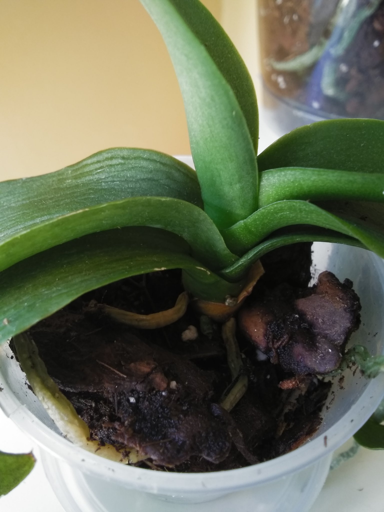 Ако корените на орхидеята са загнили, препоръчително е да изрежете изгнилите части и да ги обработите с фунгицид. След това можете да я пресадите в нов субстрат, като изплакнете корените под течаща вода и ги проверите за повреди. При пресаждането е важно да бъдете внимателни с крехките корени и да ги обработите на отрязаните места с канела. Ако вашата орхидея е пожълтяла, но има здрави корени и развива нови издънки, препоръчително е внимателно да я извадите от саксията, да почистите корените и да смените коритото и саксията. За да помогнете на растението, можете да го пресадите в по-малки саксии с намалена розетка, което ще позволи на младите листа и корени достъп до влагата. По-малката саксия също ще допринесе за уплътняване на пространството и предотвратяване на развитието на корените. За възрастно растение е нормално да има много (и големи) листа. Ако откриете изгнили корени върху вашата орхидея, препоръчваме ви да я пресадите в нова саксия с подходящ субстрат за орхидеи. Отстранете напълно изгнилите корени и използвайте фунгицид като Топсин, за да предотвратите по-нататъшно гниене. Оставете корените да изсъхнат преди пресаждането и продължете да я отглеждате, като поливате веднъж седмично.