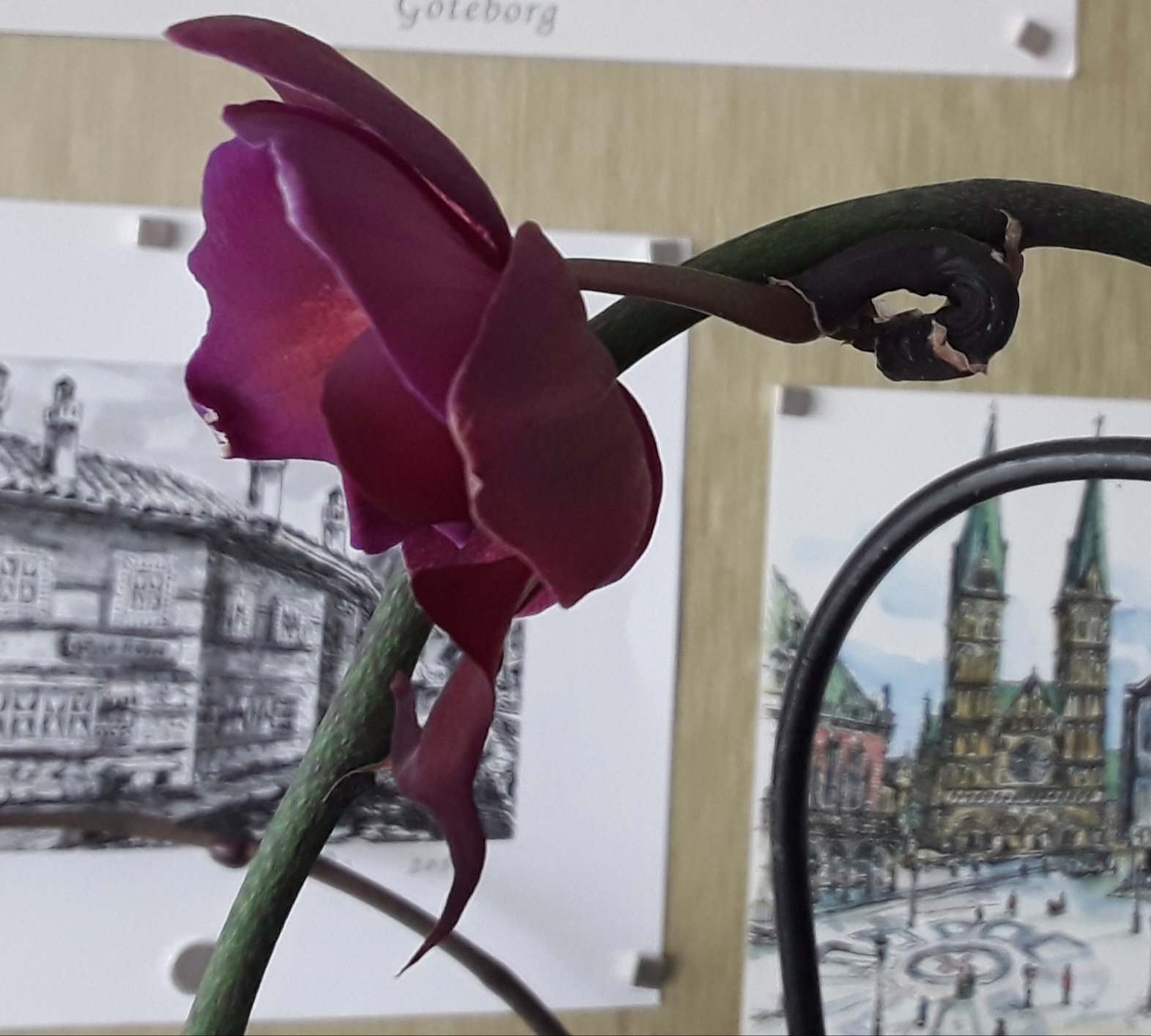 Как да процедирам? Единия цветонос покафеня и го отрязах, другият още има цветове.