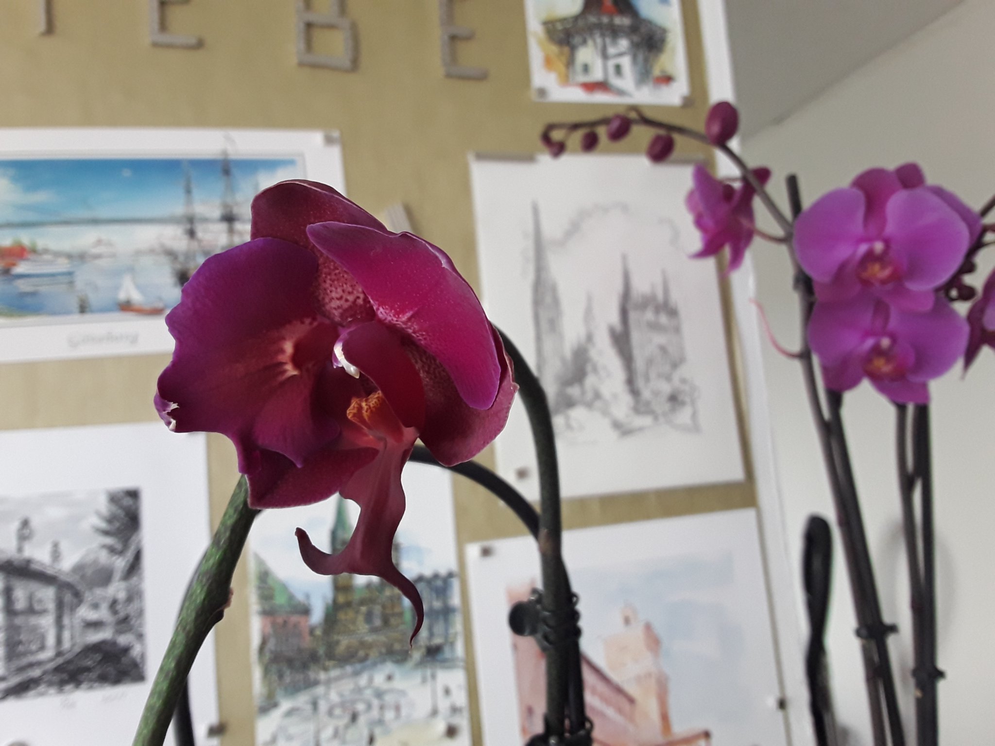 А голямата ми е малко сърдита, някои цветовe почнаха да вехнат, но има разклонения на нови цветоноси и пъпки. Simple Smile Пресадих я още веднъж в саксията, в която беше но купих нова смес от борови кори. И добре, че го направих, ако я бях оставала в предишната, щях да изпусна и нея. Корените, които бяха с оранжев цвят направо бяха омекнали и тръгнали да гният, орязах всичко, киснах пак и напудрих щедро с препарат против гниене. Дано сега се чувства по-добре.