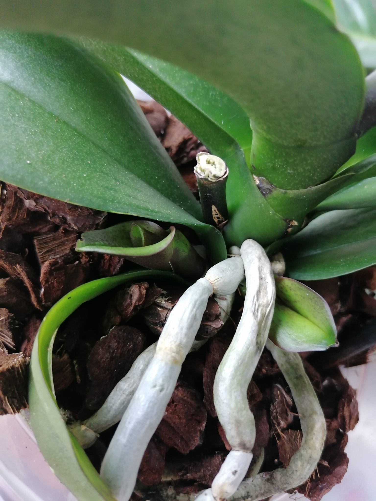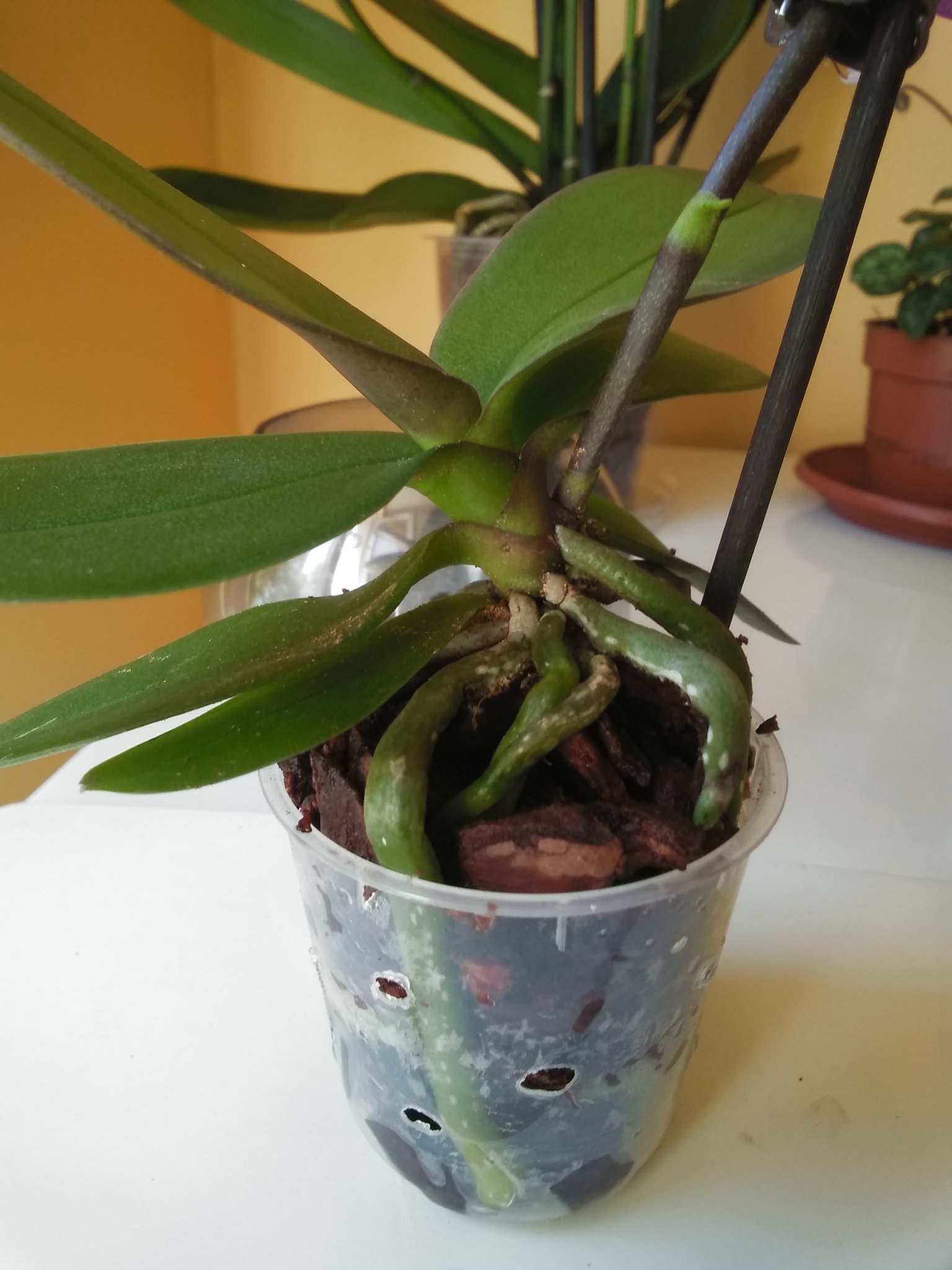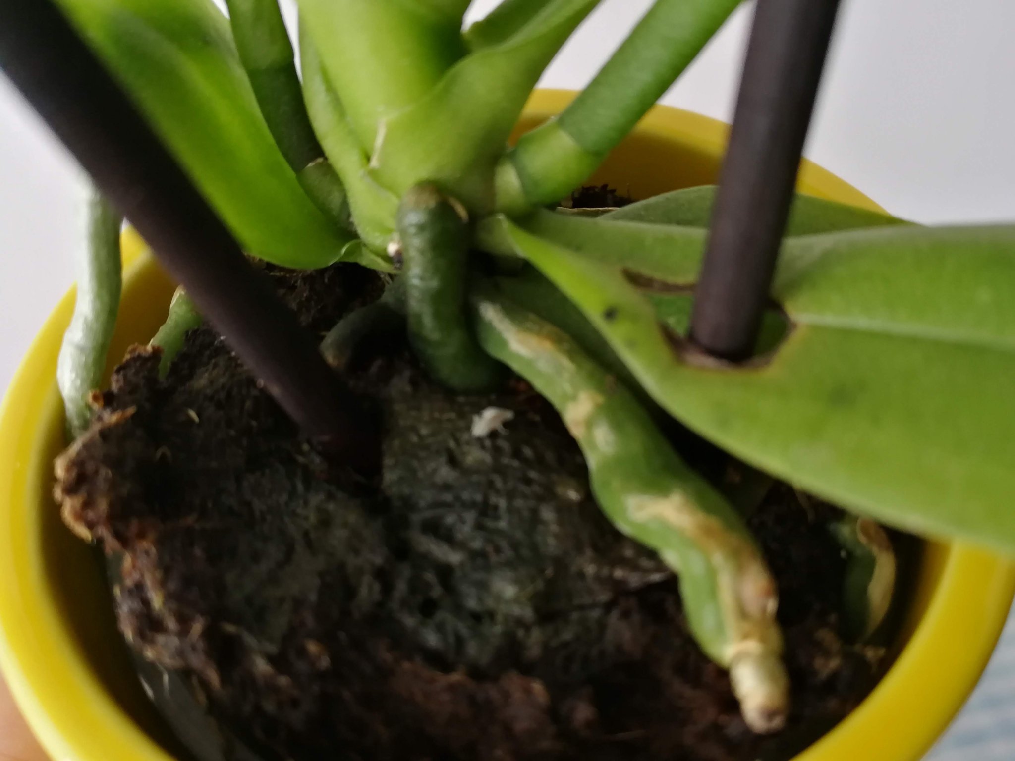Ако корените на орхидеята са загнили, препоръчително е да изрежете изгнилите части и да ги обработите с фунгицид. След това можете да я пресадите в нов субстрат, като изплакнете корените под течаща вода и ги проверите за повреди. При пресаждането е важно да бъдете внимателни с крехките корени и да ги обработите на отрязаните места с канела. Ако вашата орхидея е пожълтяла, но има здрави корени и развива нови издънки, препоръчително е внимателно да я извадите от саксията, да почистите корените и да смените коритото и саксията. За да помогнете на растението, можете да го пресадите в по-малки саксии с намалена розетка, което ще позволи на младите листа и корени достъп до влагата. По-малката саксия също ще допринесе за уплътняване на пространството и предотвратяване на развитието на корените. За възрастно растение е нормално да има много (и големи) листа. Ако откриете изгнили корени върху вашата орхидея, препоръчваме ви да я пресадите в нова саксия с подходящ субстрат за орхидеи. Отстранете напълно изгнилите корени и използвайте фунгицид като Топсин, за да предотвратите по-нататъшно гниене. Оставете корените да изсъхнат преди пресаждането и продължете да я отглеждате, като поливате веднъж седмично.