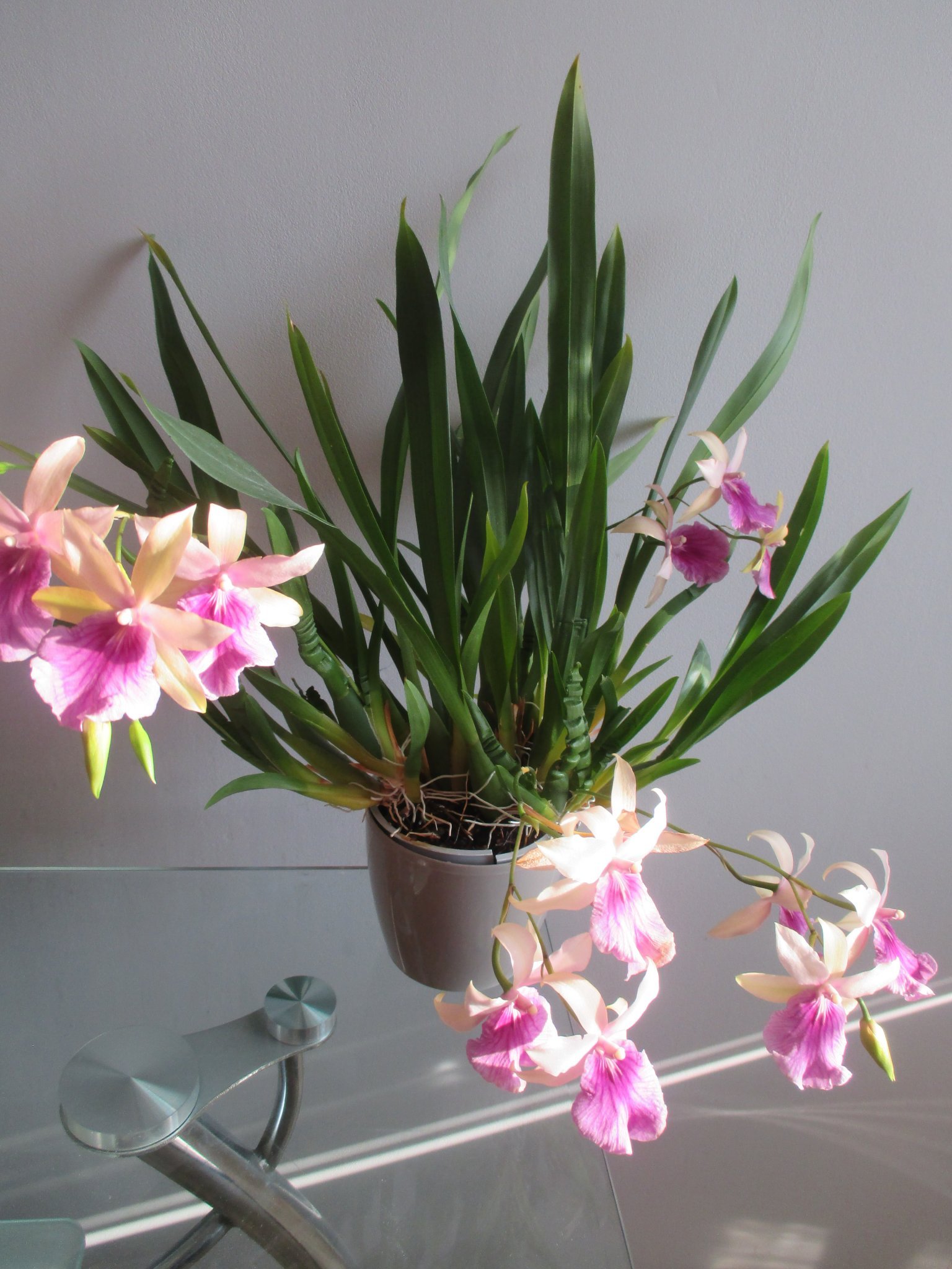 Много от участниците споделят, че техните орхидеи се отглеждат с минимална намеса. Те ги оставят на западен прозорец, където получават слънчева светлина около 3 часа, и ги поливат рядко въз основа на позицията на саксиите. Някои от тях използват висящи кашпи, които позволяват на растенията да растат свободно. През лятото орхидеите изискват по-често поливане, тъй като топлите температури ускоряват изсъхването на субстрата. Поливайте ги, когато горният 2-3 см от субстрата изсъхне. Осигурете им ярка, но не пряка слънчева светлина и избягвайте температури над 30°C. Наторявайте ги през пролетта и есента, спрете торенето, ако започнат да произвеждат цветоноси.