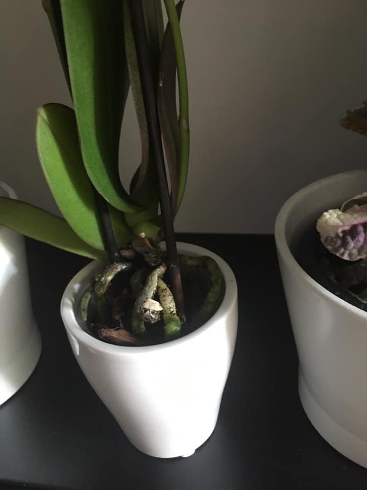 Ако корените на орхидеята са загнили, препоръчително е да изрежете изгнилите части и да ги обработите с фунгицид. След това можете да я пресадите в нов субстрат, като изплакнете корените под течаща вода и ги проверите за повреди. При пресаждането е важно да бъдете внимателни с крехките корени и да ги обработите на отрязаните места с канела. Ако вашата орхидея е пожълтяла, но има здрави корени и развива нови издънки, препоръчително е внимателно да я извадите от саксията, да почистите корените и да смените коритото и саксията. За да помогнете на растението, можете да го пресадите в по-малки саксии с намалена розетка, което ще позволи на младите листа и корени достъп до влагата. По-малката саксия също ще допринесе за уплътняване на пространството и предотвратяване на развитието на корените. За възрастно растение е нормално да има много (и големи) листа. Ако откриете изгнили корени върху вашата орхидея, препоръчваме ви да я пресадите в нова саксия с подходящ субстрат за орхидеи. Отстранете напълно изгнилите корени и използвайте фунгицид като Топсин, за да предотвратите по-нататъшно гниене. Оставете корените да изсъхнат преди пресаждането и продължете да я отглеждате, като поливате веднъж седмично.