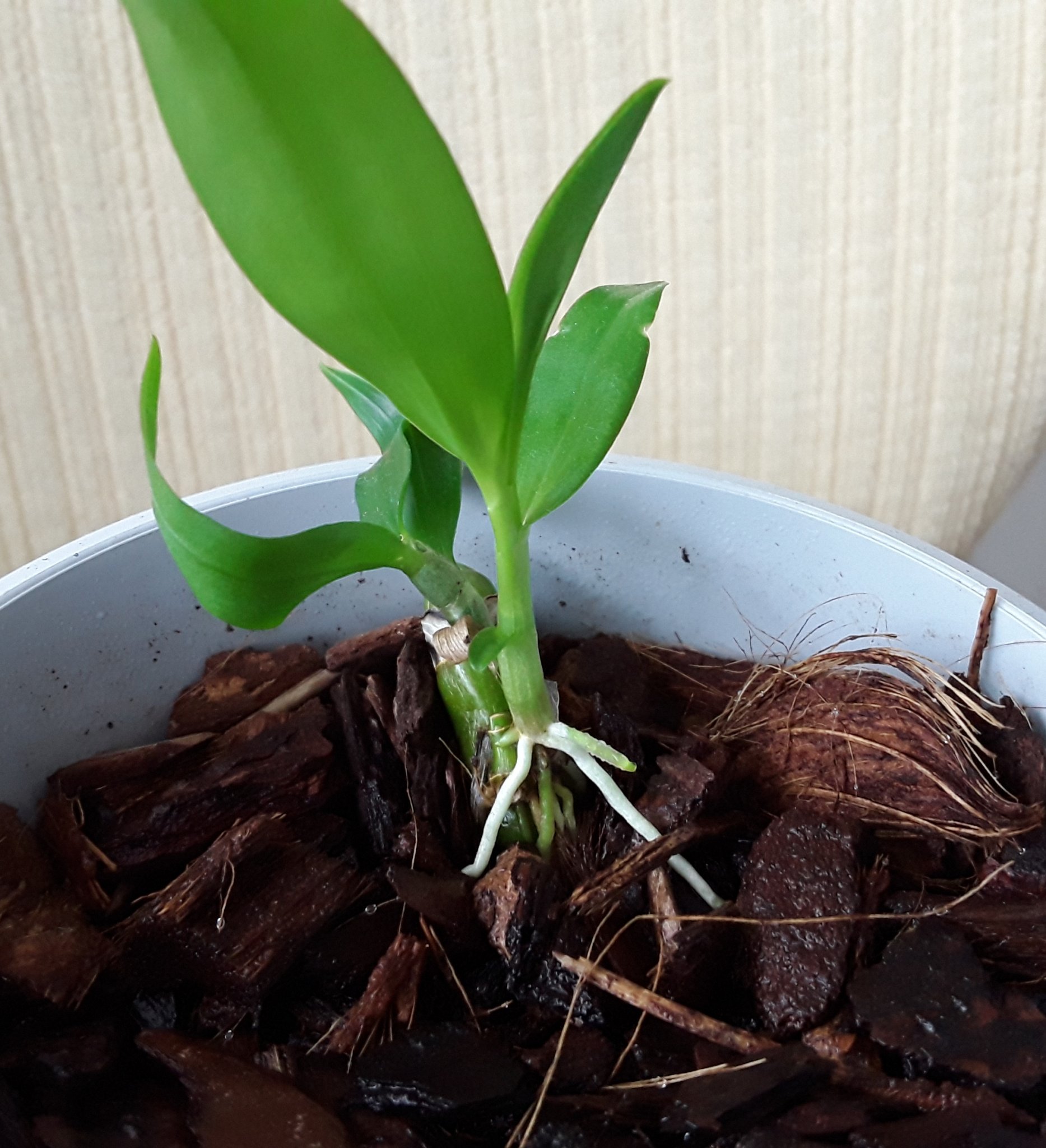 Защо новите листа на орхидеята са по-светлозелени от обикновено, почти жълтеникави?