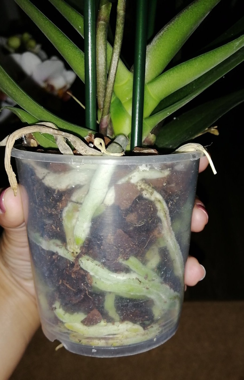 Ако корените на орхидеята са загнили, препоръчително е да изрежете изгнилите части и да ги обработите с фунгицид. След това можете да я пресадите в нов субстрат, като изплакнете корените под течаща вода и ги проверите за повреди. При пресаждането е важно да бъдете внимателни с крехките корени и да ги обработите на отрязаните места с канела. Ако вашата орхидея е пожълтяла, но има здрави корени и развива нови издънки, препоръчително е внимателно да я извадите от саксията, да почистите корените и да смените коритото и саксията. За да помогнете на растението, можете да го пресадите в по-малки саксии с намалена розетка, което ще позволи на младите листа и корени достъп до влагата. По-малката саксия също ще допринесе за уплътняване на пространството и предотвратяване на развитието на корените. За възрастно растение е нормално да има много (и големи) листа. Ако откриете изгнили корени върху вашата орхидея, препоръчваме ви да я пресадите в нова саксия с подходящ субстрат за орхидеи. Отстранете напълно изгнилите корени и използвайте фунгицид като Топсин, за да предотвратите по-нататъшно гниене. Оставете корените да изсъхнат преди пресаждането и продължете да я отглеждате, като поливате веднъж седмично.