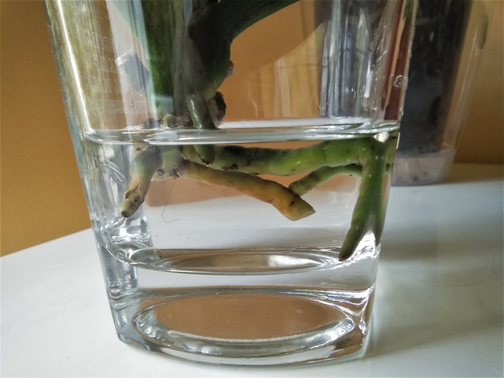 Ако корените на орхидеята са загнили, препоръчително е да изрежете изгнилите части и да ги обработите с фунгицид. След това можете да я пресадите в нов субстрат, като изплакнете корените под течаща вода и ги проверите за повреди. При пресаждането е важно да бъдете внимателни с крехките корени и да ги обработите на отрязаните места с канела. Ако вашата орхидея е пожълтяла, но има здрави корени и развива нови издънки, препоръчително е внимателно да я извадите от саксията, да почистите корените и да смените коритото и саксията. За да помогнете на растението, можете да го пресадите в по-малки саксии с намалена розетка, което ще позволи на младите листа и корени достъп до влагата. По-малката саксия също ще допринесе за уплътняване на пространството и предотвратяване на развитието на корените. За възрастно растение е нормално да има много (и големи) листа. Ако откриете изгнили корени върху вашата орхидея, препоръчваме ви да я пресадите в нова саксия с подходящ субстрат за орхидеи. Отстранете напълно изгнилите корени и използвайте фунгицид като Топсин, за да предотвратите по-нататъшно гниене. Оставете корените да изсъхнат преди пресаждането и продължете да я отглеждате, като поливате веднъж седмично.