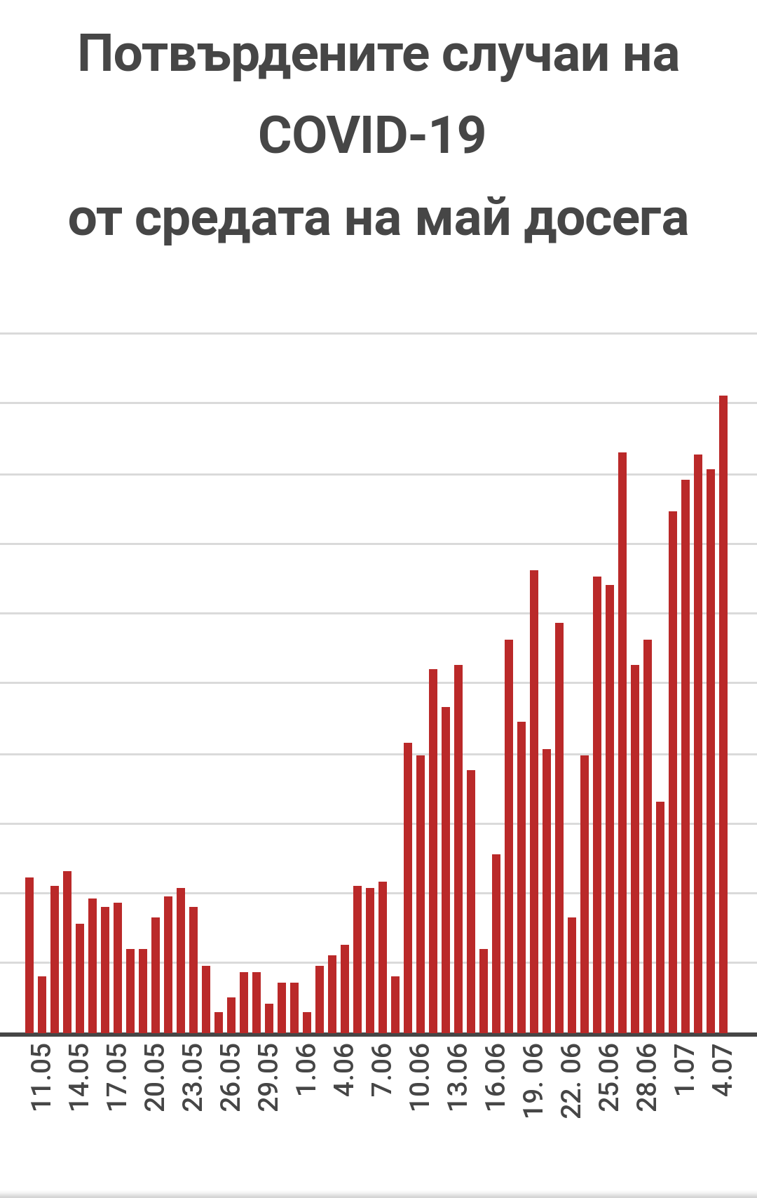 Той описа днешната ситуация като "втория пик на първата вълна" и предположи, че през есента броят на регистрираните заразени ще достигне 10 000, а нерегистрираните ще са шестцифрено число. Той изнесе данни, според които 100 души заразяват 130. "Това означава, че все още при нас епидемията се развива относително бавно. Нараствайки бавно, ние можем с по-голяма ефективност да хващаме клъстерите и да ограничаваме. Тя не тича много бързо, може да я хващаме и да я спираме", каза математикът.