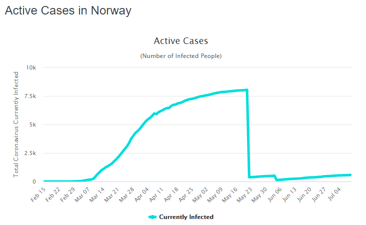 Докато разглеждах графиките на активните случаи в европейските страни, попаднах на две много странни - едната е баш на Норвегия, а другата - на Словения. Невъзможно е това да стане, според мен: