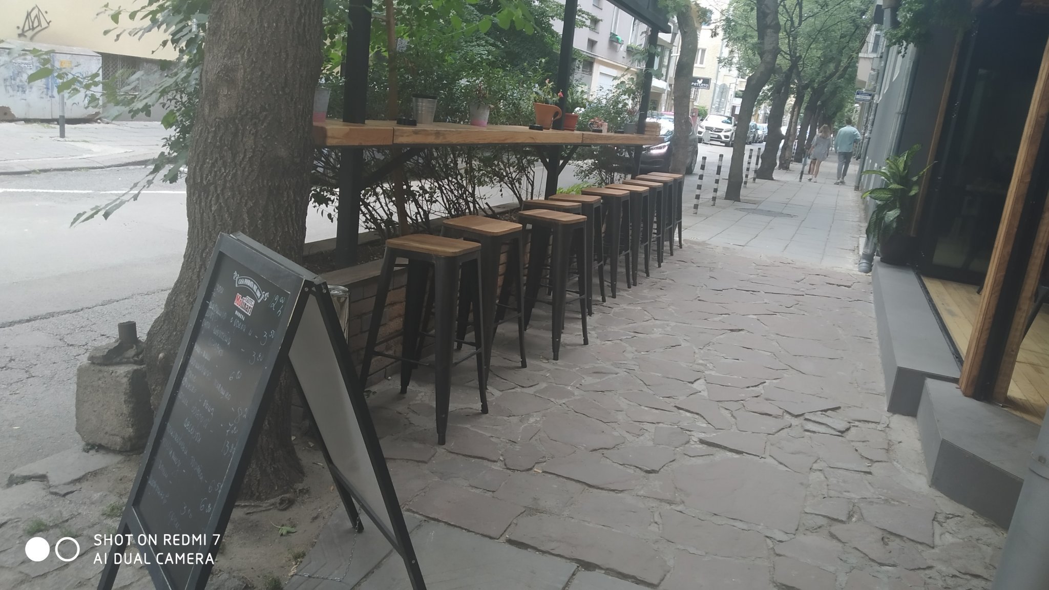 Ето как се спазват мерките в откритата част на кварталното кръчме. Имам страшно много работа и нямах време да огледам как е по Витошка. Но поне сервитьорката вътре беше с маска.