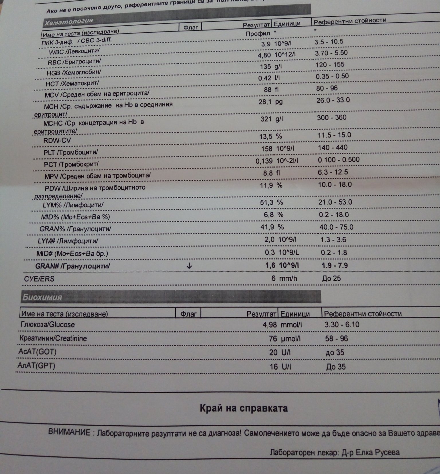 Ами че аз и на първата имах по-малко неутрофили (които в тази лаб са обозначени като GRAN). Simple Smile Но нямах завишени лимфоцити. Къде е логиката?