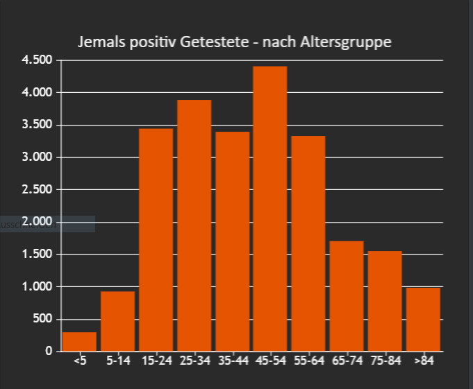 За осем дни Австрия тества 262 връщащи се туристи от Хърватска позитивно. Интересното е, че възрастовите групи изглеждат съвсем различно от в другите държави. Пускам графиката, ако за някой е интересно. Явно от 55 години нагоре са рядко заразени, което обяснява най-вероятно малкото болни в болници. Не зная хубаво ли е или лошо, при положение, че вирусът е нов, но пък в момента няма претоварване на болниците, както беше през март и със сигурност няма да донесе такава смъртност в момента.