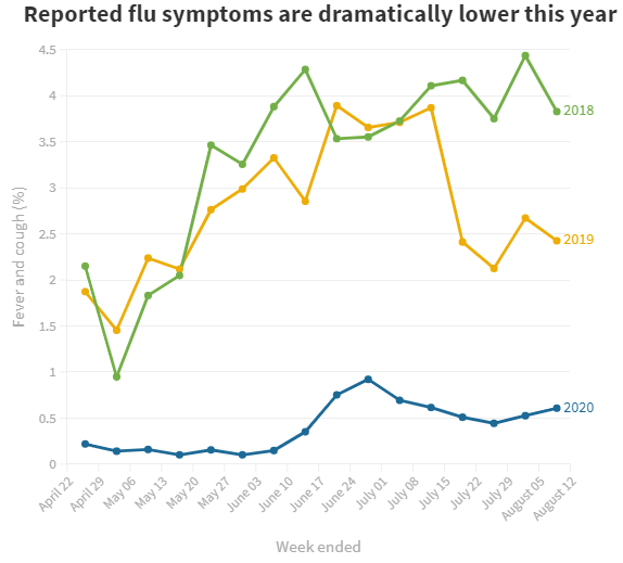 Грипът почти напълно е изчезнал в Нова Зеландия през зимата на 2020 година.