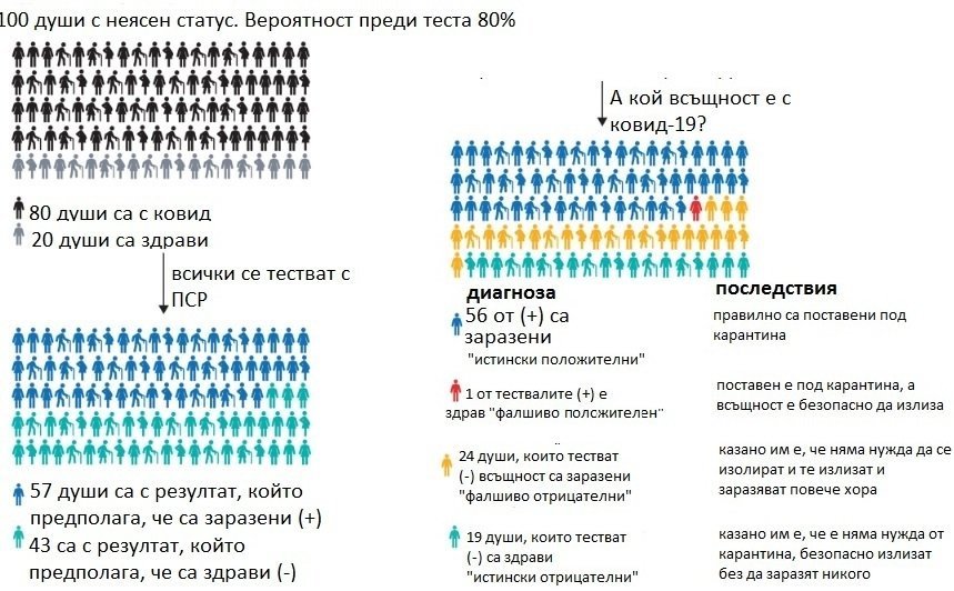 Интерпретиране на резултати от тест за ковид-19 Защо контатактни се поставят под карантина и без тест и защо положителен ПСР има повече тежест от няколко отрицателни.