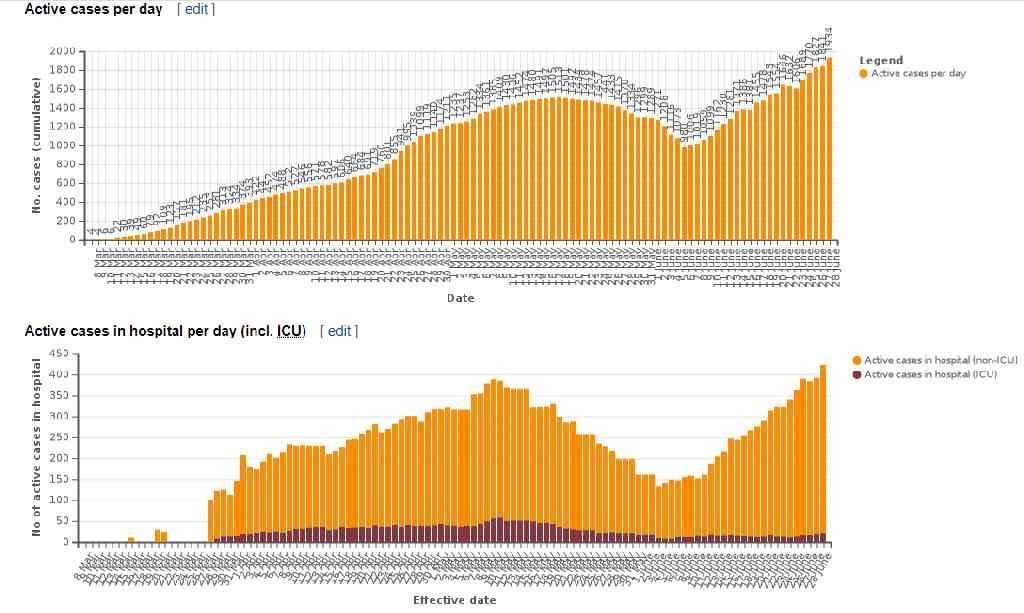 Твърдо около 21-22% от откритите заразени имат нужда от болнично лечение и около 1% от заразените е на респиратор. Което при рязкото скачане на случаите скоро ще препълни болниците.