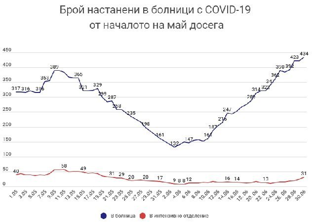 Вчера директорът на болницата за спешна помощ "Пирогов" Асен Балтов коментира, че около 20 на сто от заразените стигат до специализирано лечение и прогнозира, че при постъпващи 100 души дневно заради коронавирус, ще има сериозни затруднения. Той призова да се помисли за връщане към модела на отваряне на специализирани отделения за COVID-19 във всички болници и повторно ангажиране на частните лечебни заведения, както беше по време на извънредното положение. В момента само определени болници имат специализирани отделения, като за София например те са общо седем.