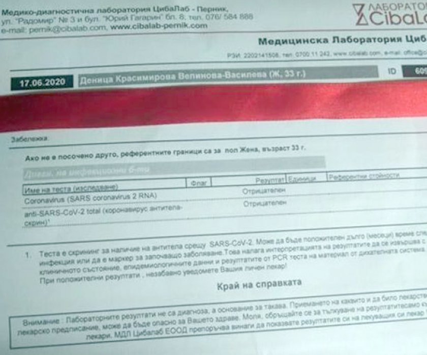 Абе то стойност може да е цифрова, текстова... Но не съм сигурна, че всички, които твърдят, че са им объркани резултатите, са гледали референтната стойност. Сетих се например за онази учителка от Перник, която РЗИ изкараха положителна. Ето нейния тест от Цибалаб