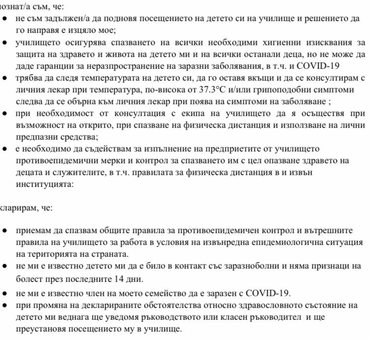 Опитах се да кажа, че документът не е истински. Някой си прави лоша шега. Съдържанието е едно към едно с декларацията за детска градина/ясла. Просто са използвали  училище вместо детска градина/ясла и ръководството или класния ръководител вместо директора на детската градина