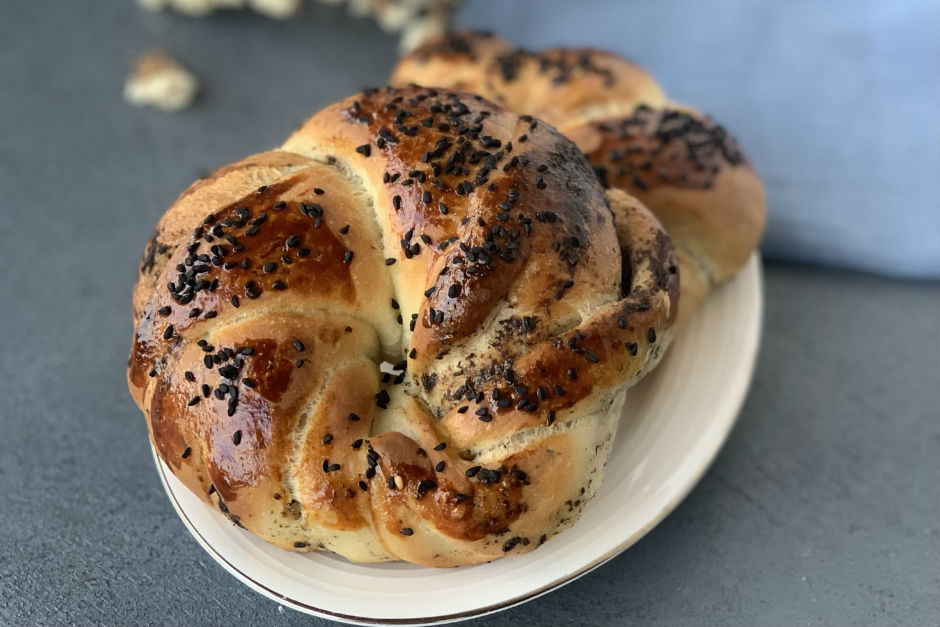 С поделена маслинова кифла и отстъпен бананов шейк. Grinning