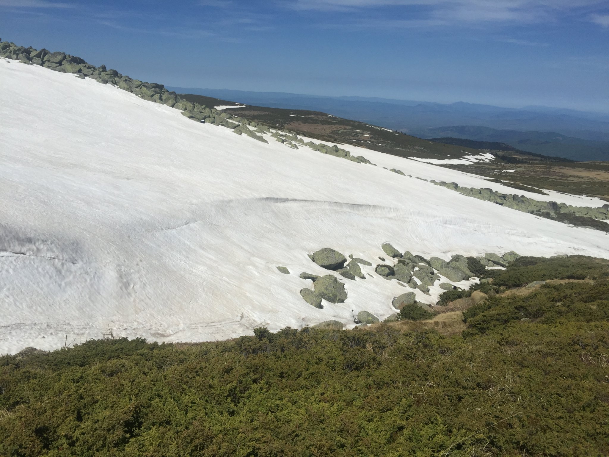 Към Черни връх на места и особено последните 300 м също са доста заснежени и ако не знаеш къде има камънаци и дупки, може кракът ти да пропадне. Ние тръгнахме 9:30 от Алеко, към 12ч бяхме на Черни връх и като цяло се ядваше, но като тръгнахме надолу към 14ч снегът беше значително омекнал и се хлъзгаше много (въпреки стабилните туристически обувки). Като цяло си харесвам много този маршрут, но за пръв път го минавам в сезон със сняг и май не бих повторила. Ще чакам до 2-3 седмици поне да се изчистят пътеките Simple Smile Да уточня, че откъм Голи връх пътеката от/до Алеко (където е в посока към Комините) няма проблем със сняг защото такъв няма, през мочурливото може да се намокрите, ако не сте със стабилни обувки.