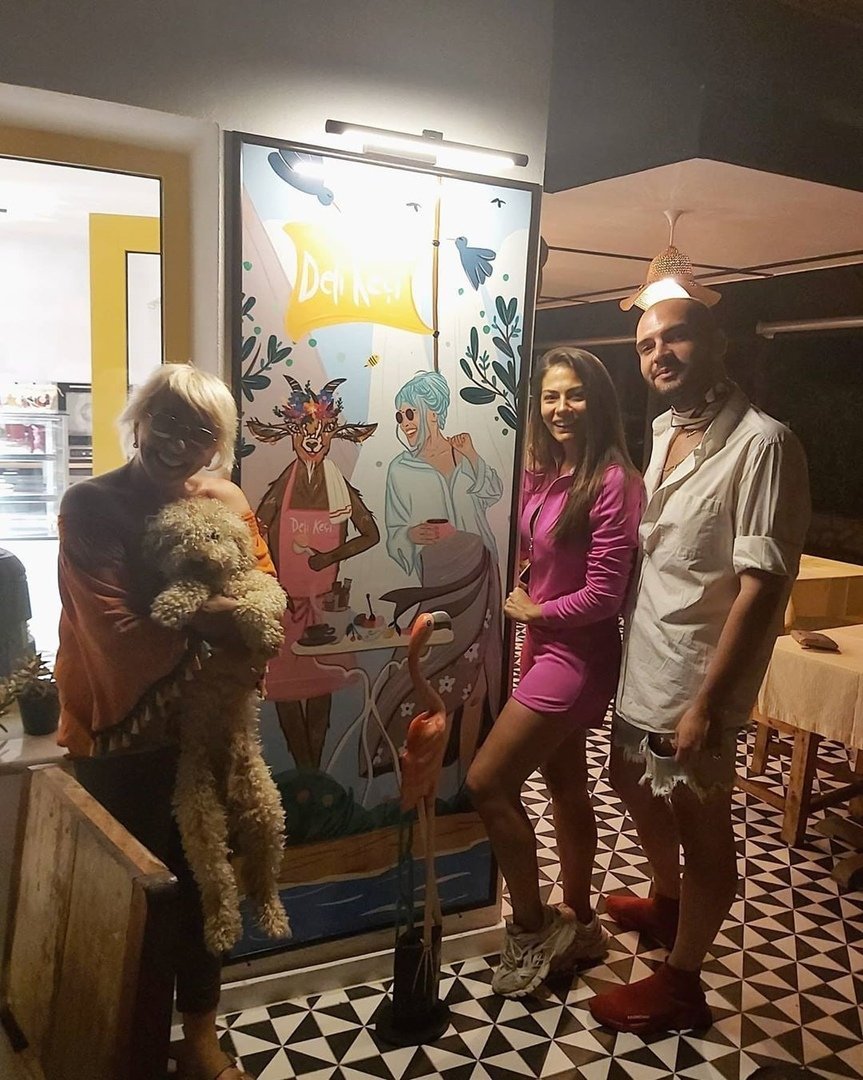 Имат чувство за хумор - надписът на картината, до която позират е "лудата коза". Може и да е името на заведението, но по-скоро се самоиронизират Simple Smile Иначе, ако е вярно, че са наели яхтата за 10 дена, вече трябва да са слезнали от нея, защото вчера изтекоха. Така като гледам обаче, нямат никакво намерение да се завръщат в Истанбул.