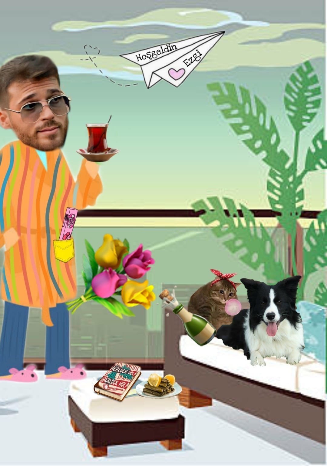 един забавен колаж с халата и кучето