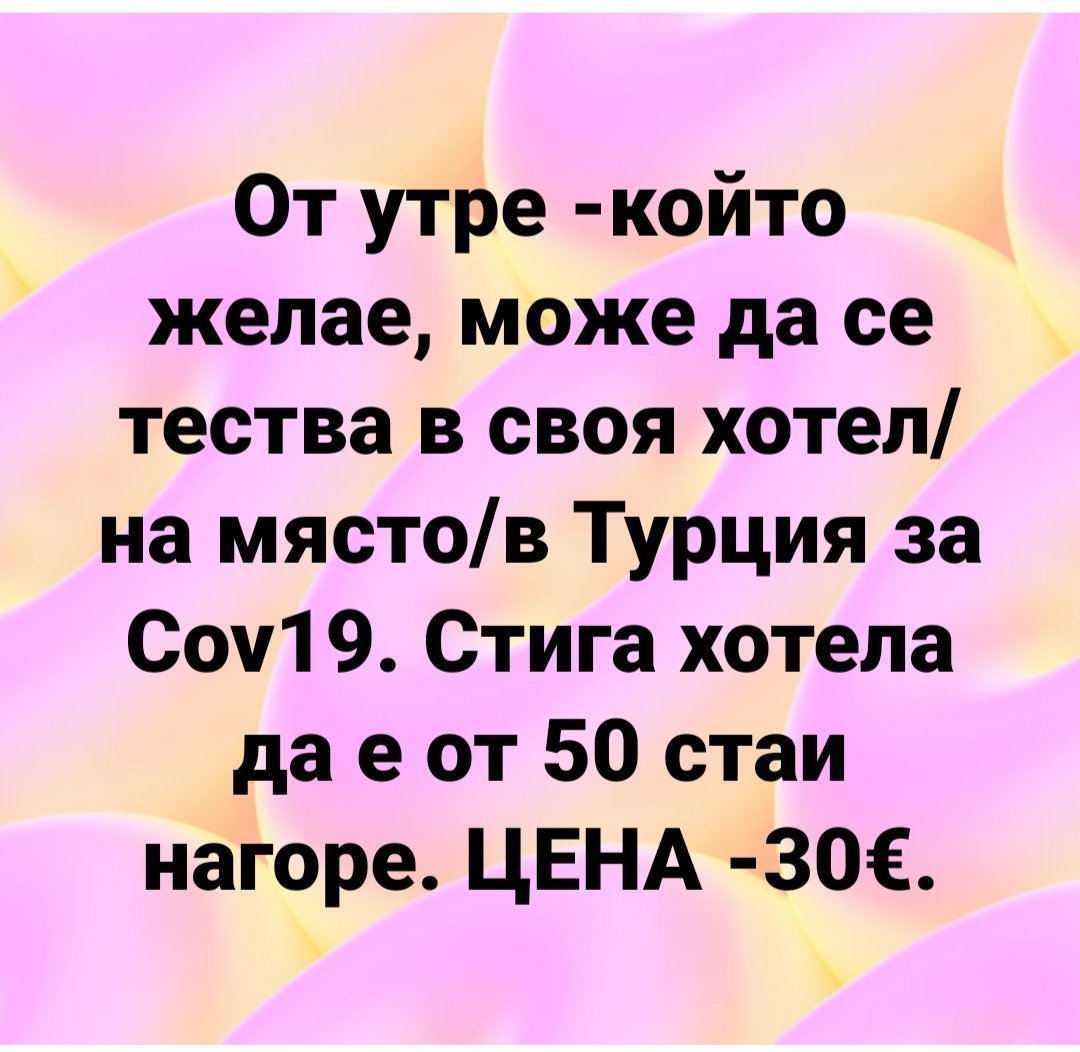 Ох,това с тия постоянни смени на дати е най-неприятното особенно ако трябва да сменяш отпуски и да се съобразяваш и с други хора.На агенциите хич не им пука за това все едно си с куфара до вратата и като ти свирнат да си готов да тръгнеш.За теста това поне е добре дори и 30евро да е.По добре така отколкото да се луташ по турски болници.