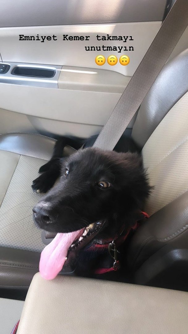 Аслы куда-то отправилась с Оли, предполагаю, что в ветеренарную клинику. На первом фото посадила рядом на переднее сиденье и написала: "не забудьте пристегнуть ремни". А на втором такая милота. Видно Оли ее уже очень полюбил. Ремень безопасности не помог, не удержал, прижался к Аслы 😁❤🐶